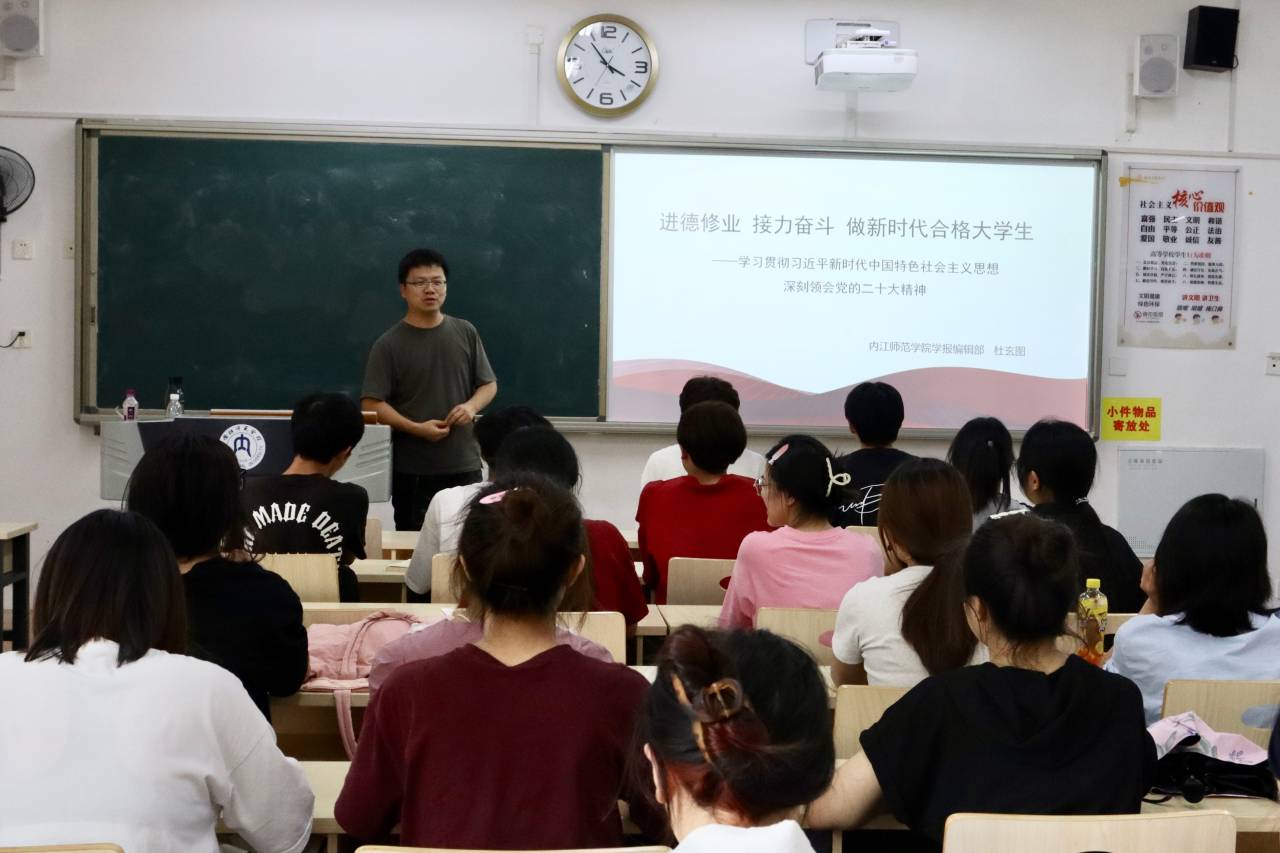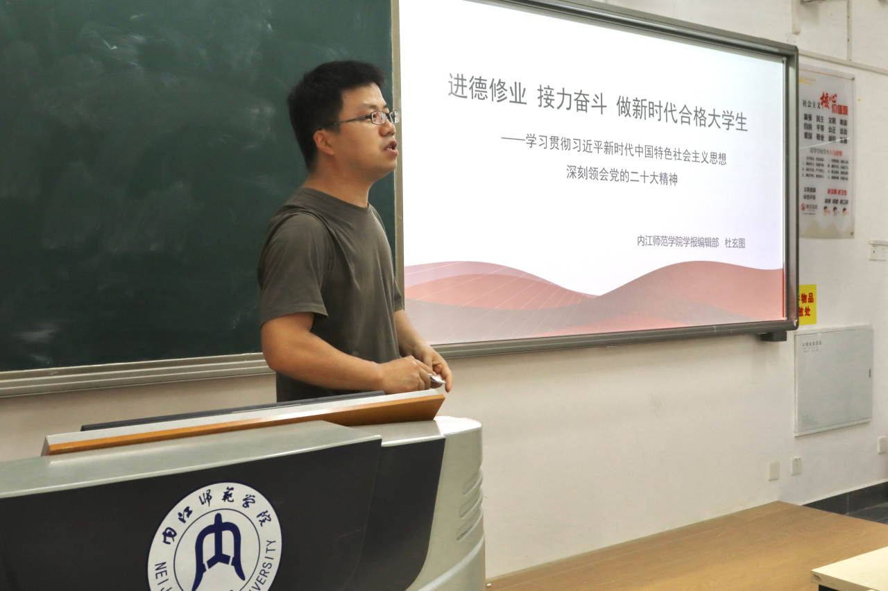 为学习贯彻习近平新时代中国特色社会主义思想,深刻领会党的二十大精神,并进一步增强公司学子的责任感和使命感,6月20日下午三点五十分,公司于明德楼B区122教室开展主题教育学习专题讲座。此次活动由公司学报编辑部副主任杜玄图老师担任主讲人,公司2022级4班全体同学参与。