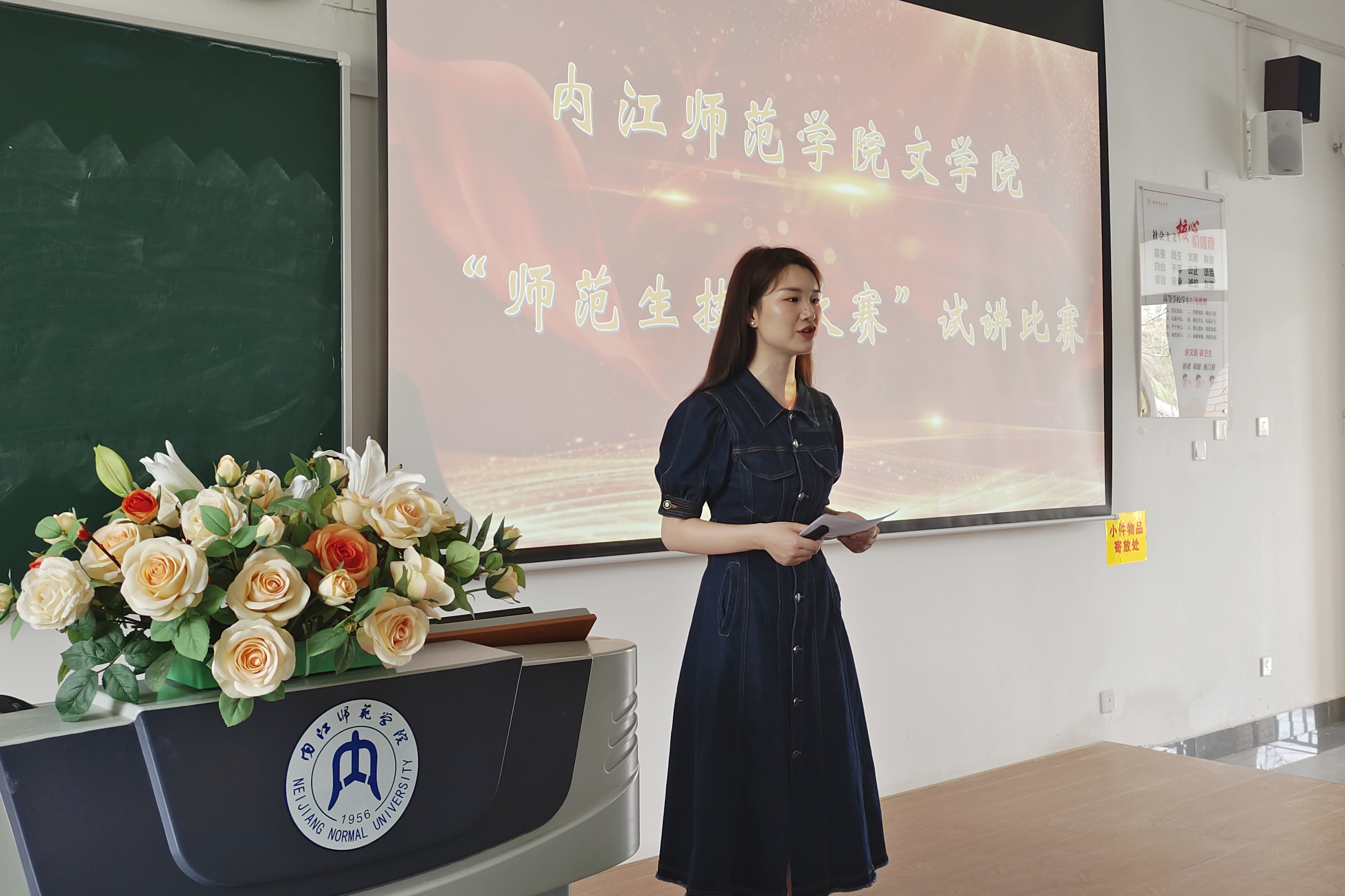 语文教学论教研室老师们从两月前就师范生教师口语、教师教态、授课内容设计、教学方法、多媒体使用以及板书设计等方面对参赛选手进行了系统训练和指导。比赛中,选手们以精准的知识点把控力,高效的课堂驾驭能力展现出tyc5997太阳集团师范生较强的专业能力,展示了公司学子的青春风采。来自内江六中的施路老师在比赛结束后对每位选手的模拟授课的试讲环节进行了针对性点评,同时在教学设计和教学方法、教师礼仪等方面提出了建议。本次师范生模拟授课比赛的成功举行,为师范生提供了一个实践与交流的平台,也对公司提升师范生实践教学水平、增强实践创新能力起到了促进作用。