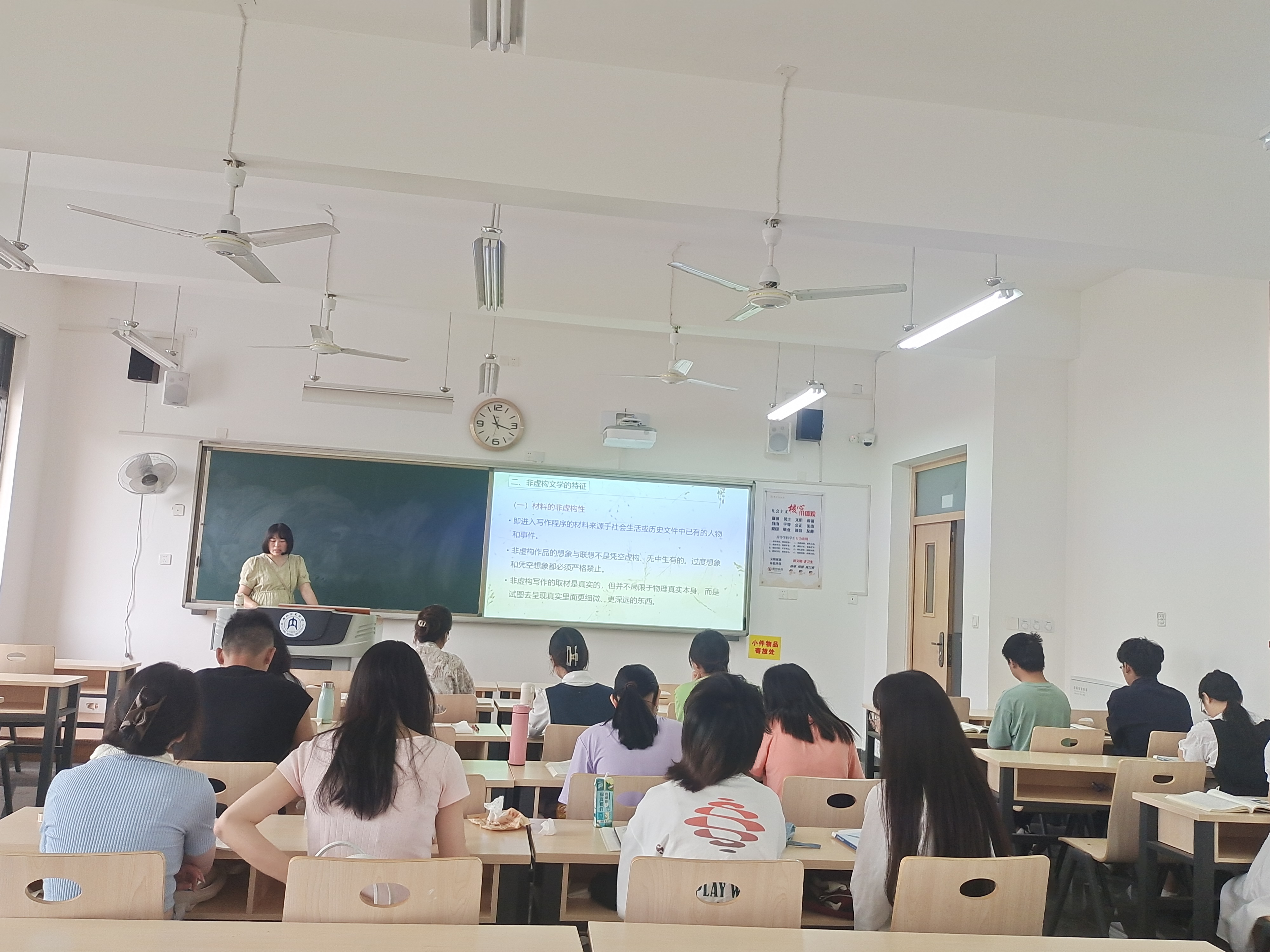 为了打造“金课”,促进一流课程建设,提高青年教师授课质量,文艺学教研室拟在青年教师中开展教学评比活动。3月21日上午10点,在明德楼A区208教室,文艺学教研室蒲丽君老师的讲课在员工的期待中展开。蒲老师的讲课主题为“非虚构文学的特征”,课程讲述从写作的材料来源、想象的现实基础、材料呈现的细腻性等方面展开,蒲老师讲课紧扣主题,举例详实,与员工交流互动良好,用自己对内容的准确把握带给员工对知识的很好掌握,同时,穿插一些幽默风趣的语言令课堂轻松惬意,掌声不断。课后教研室同仁与蒲老师进行了交流,除了肯定优点,大家主要围绕课件制作如何更精美、如何优化课堂设计进行了讨论。蒲老师表示下来要认真修改课件,在教学各个环节进行优化,以达到最好的教学效果。
