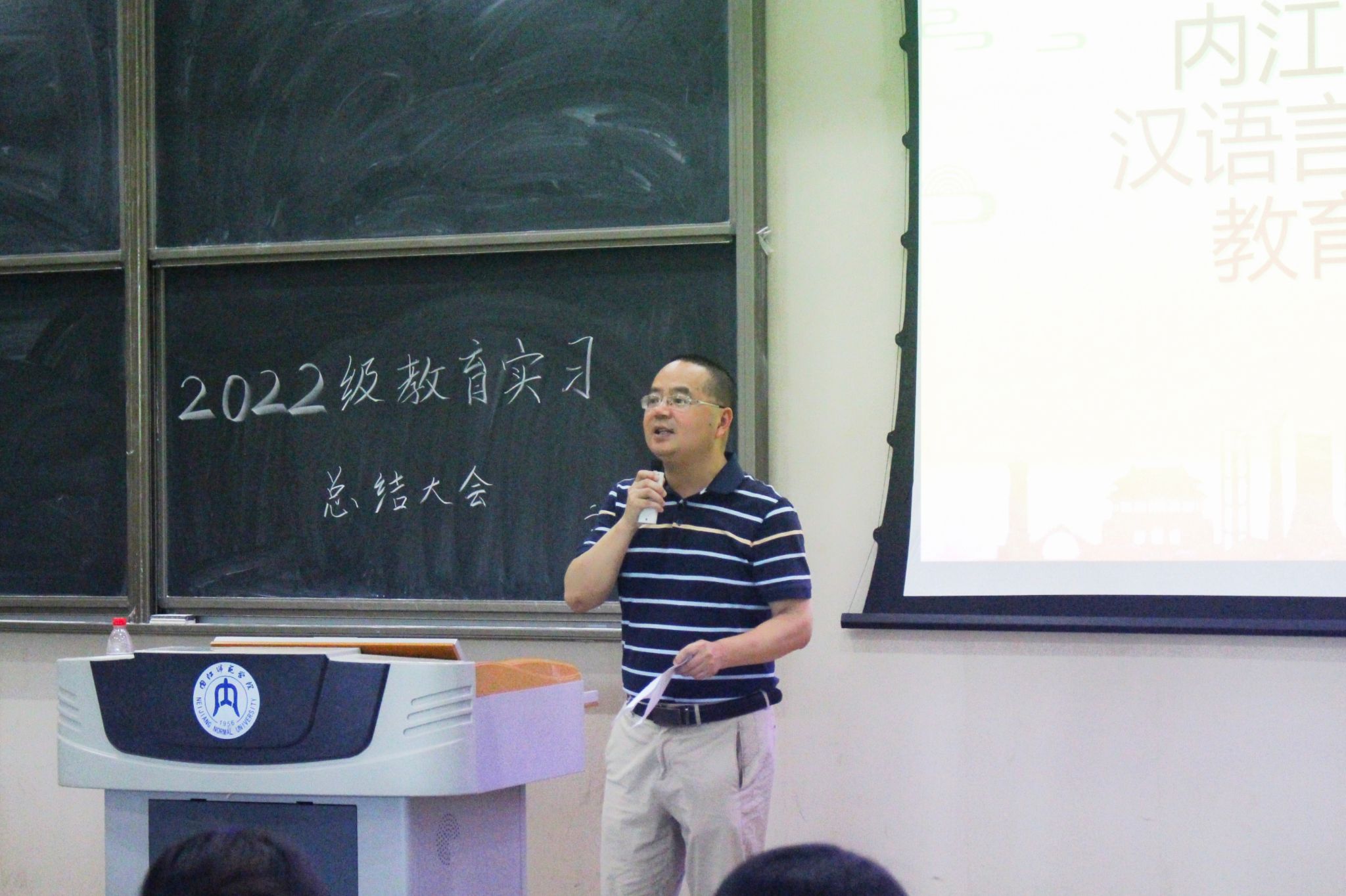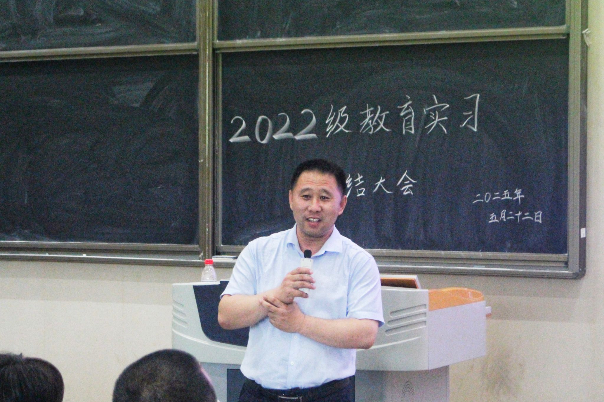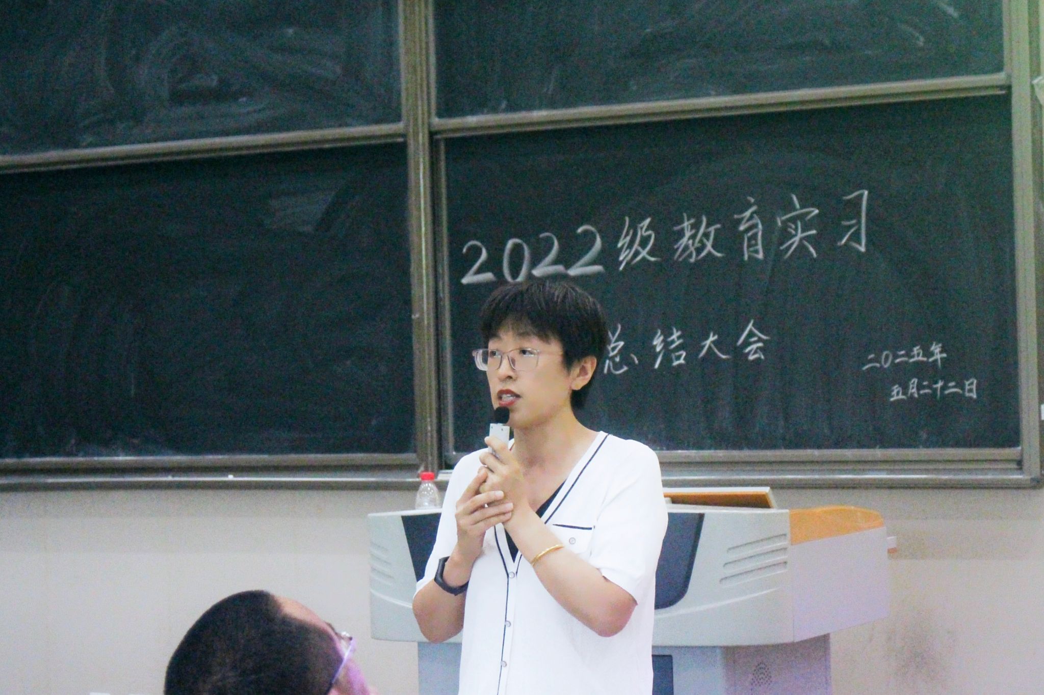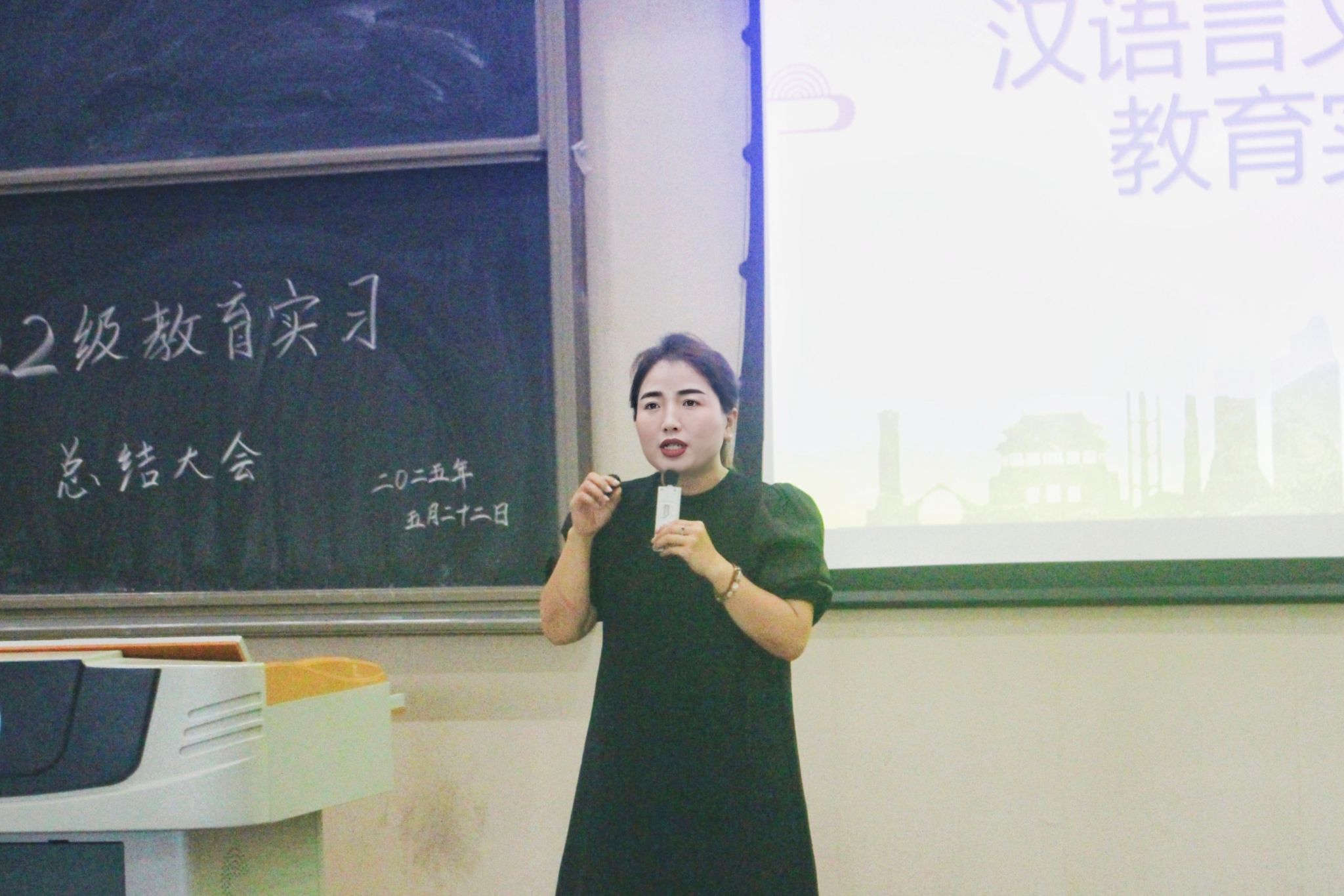 教育实习是师范生必修的教师教育实践课程,对培养员工的职业道德、公司产品能力、班主任管理能力和教学研究能力,促进员工全面发展方面具有重要作用。为梳理总结教育实习过程中的经验和不足,为下一阶段的学习就业指明方向,tyc5997太阳集团于2025年5月22日下午3点在明德楼B区213教室举行了2022级教育实习总结大会,公司党委书记周艺、副经理(主持工作)梁明玉、经理助理王昕、驻点老师、班主任、辅导员易晓慧、韩晓婷、胡卫、雷业、代思韫老师及2022级汉语言文学专业员工参加了大会。