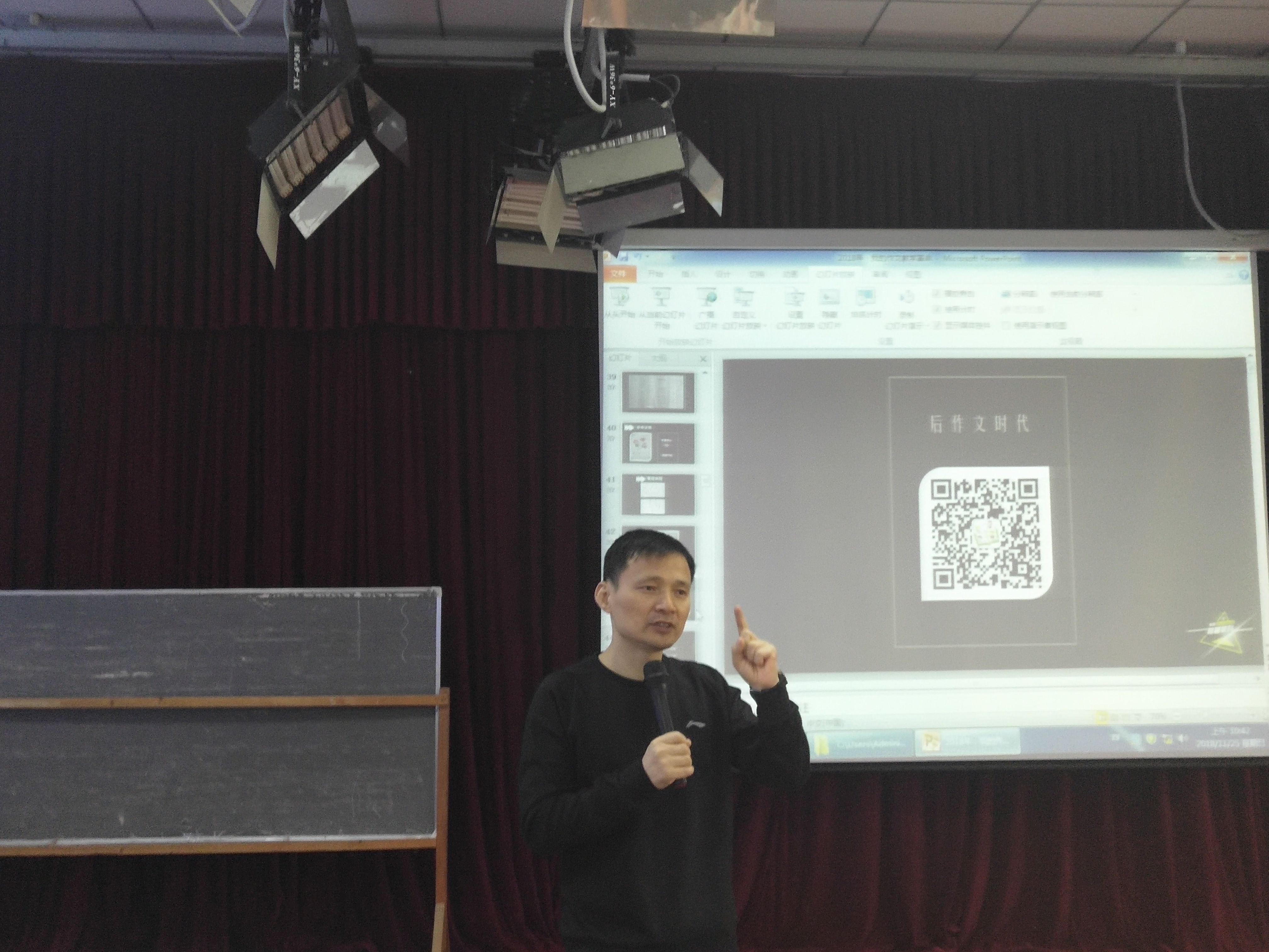 11月25日上午,为提高学员写作教学能力,江苏省语文特级教师、苏州市优秀教育工作者、江苏省特级教师管建刚于tyc5997太阳集团中文楼501教室举行《我的作文教学革命》专题讲座。本次讲座由公司经理刘云生主持,国培计划全体学员、公司部分员工参加。