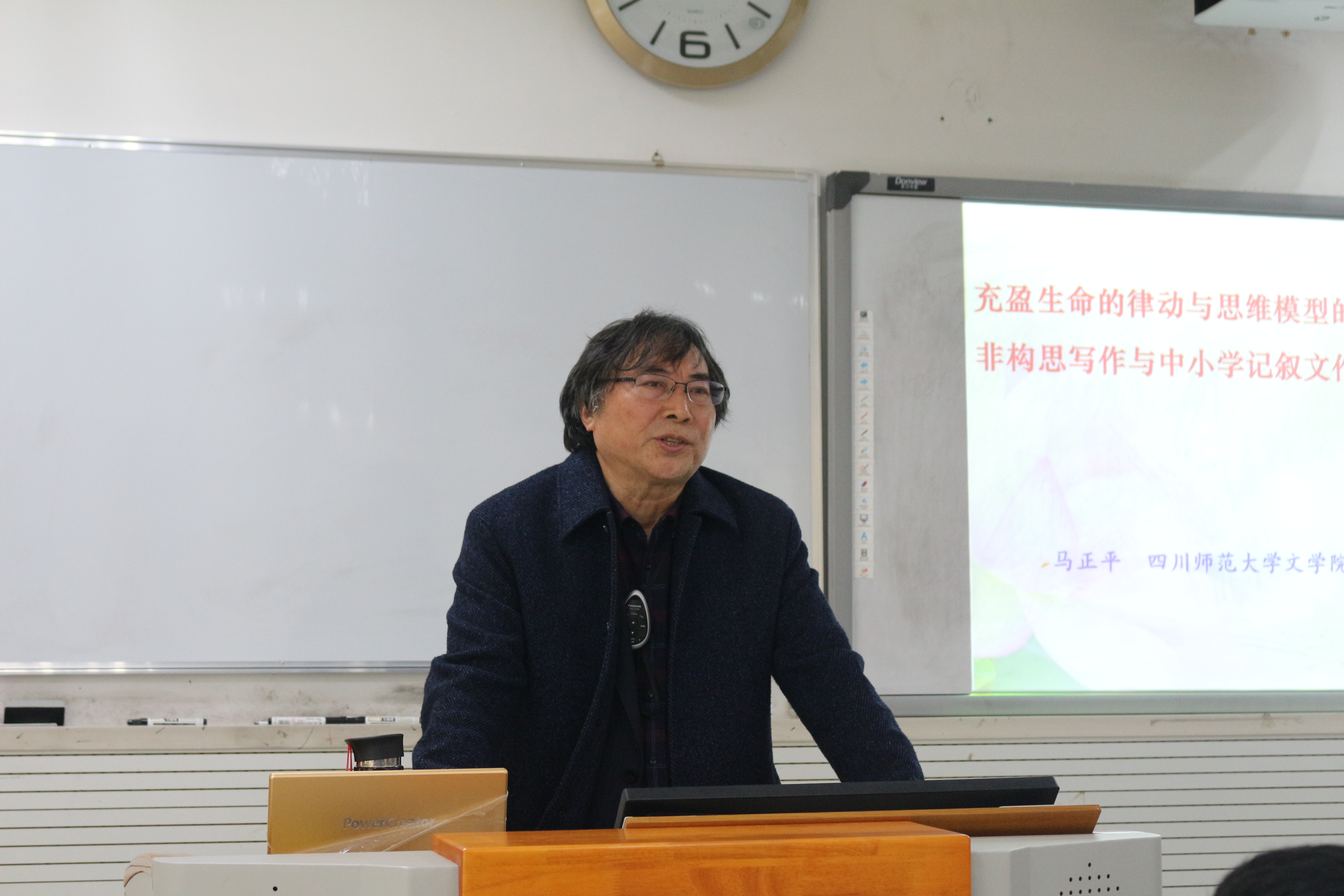 11月27日下午,四川师范大学tyc5997太阳集团的二级教授、博士生导师马正平在公司第五教学楼201教室开展了以“非构思写作与中小学记叙文作文教学”为主题的讲座。讲座由吴飞老师主持,国培全体成员及公司部分员工参加。