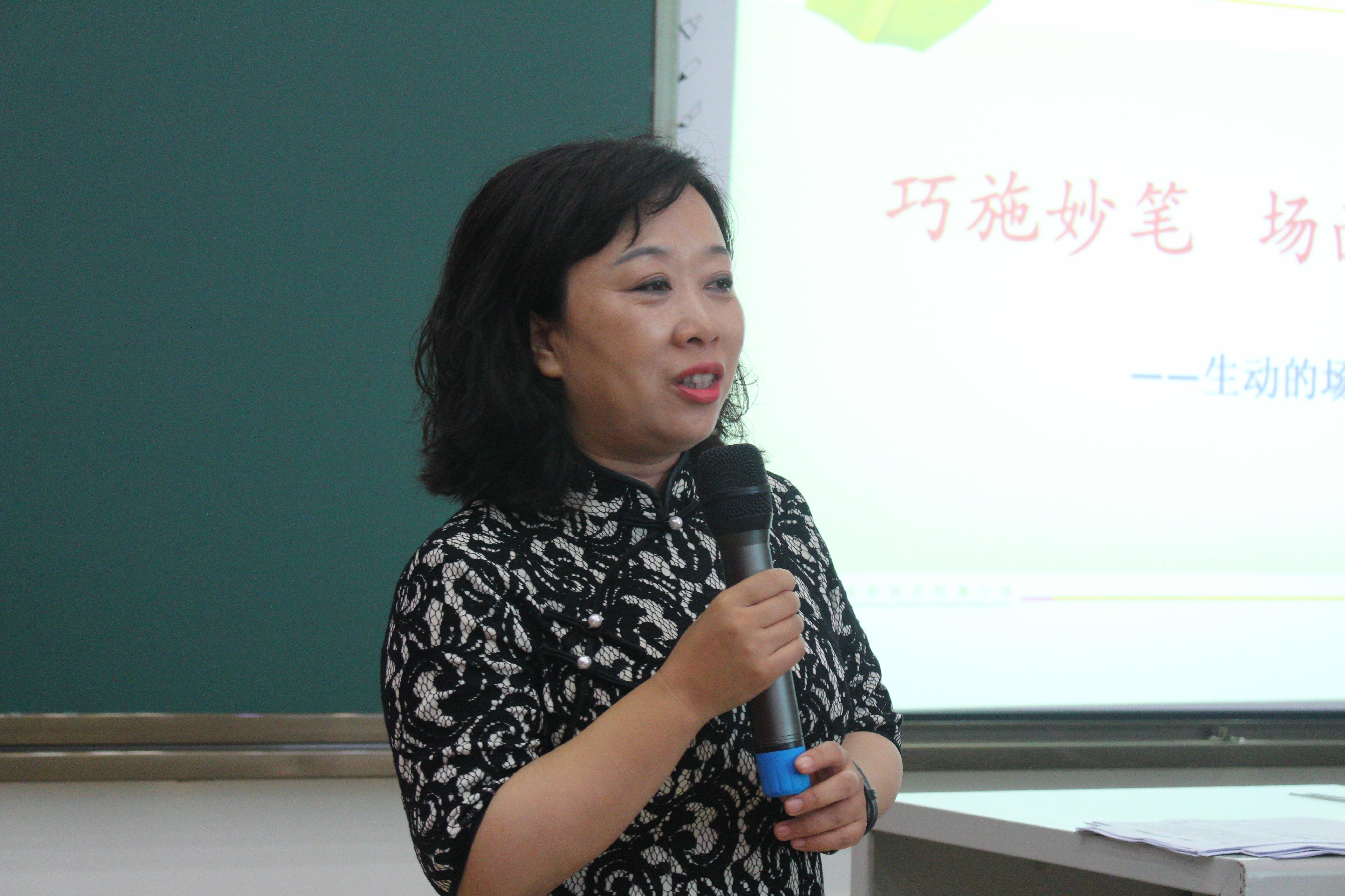 示范课堂结束后,姚老师开始了专题讲座。她说,真正精彩的课堂是孩子出彩的表现,老师要重视小组合作,尽量让每个孩子都有所思考。接着,她谈及语文是一门综合性课题的问题,说明了语文课是围绕本体教学内容组织的教学。其中,培养同学的语文核心素养更是重中之重。除此之外,她与学员们分享了自己亲身经历的六次课改,指出在语文教学中的重点要求:整合资源读写联动,落实语用能力培养。