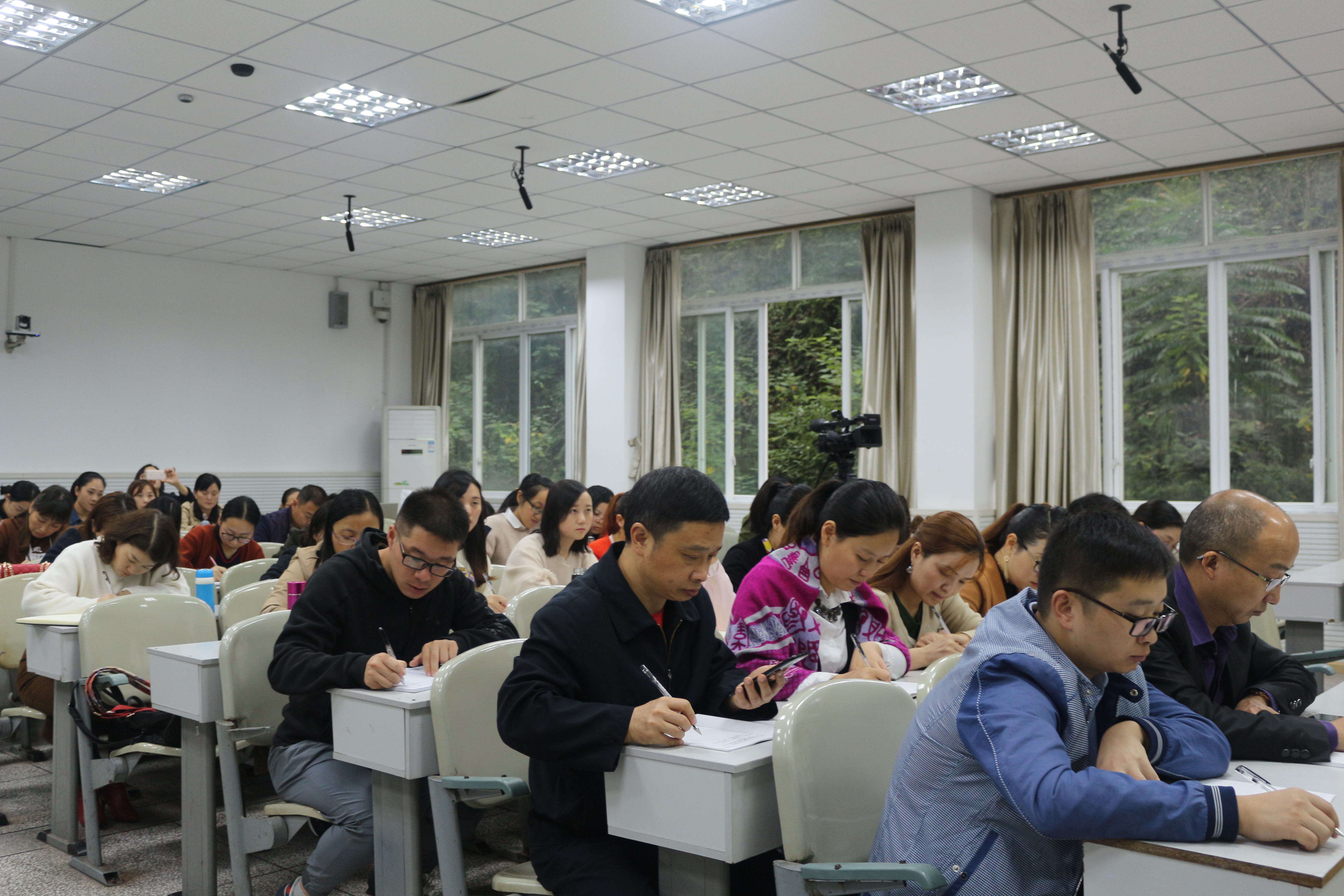 10月12日上午8点30分,重庆渝中区教科院王小毅老师在公司第五教学楼北202多媒体教室开展题为“统编教学视野下的习作教学”的主题讲座。国培计划小学组全体成员聆听了此次讲座。