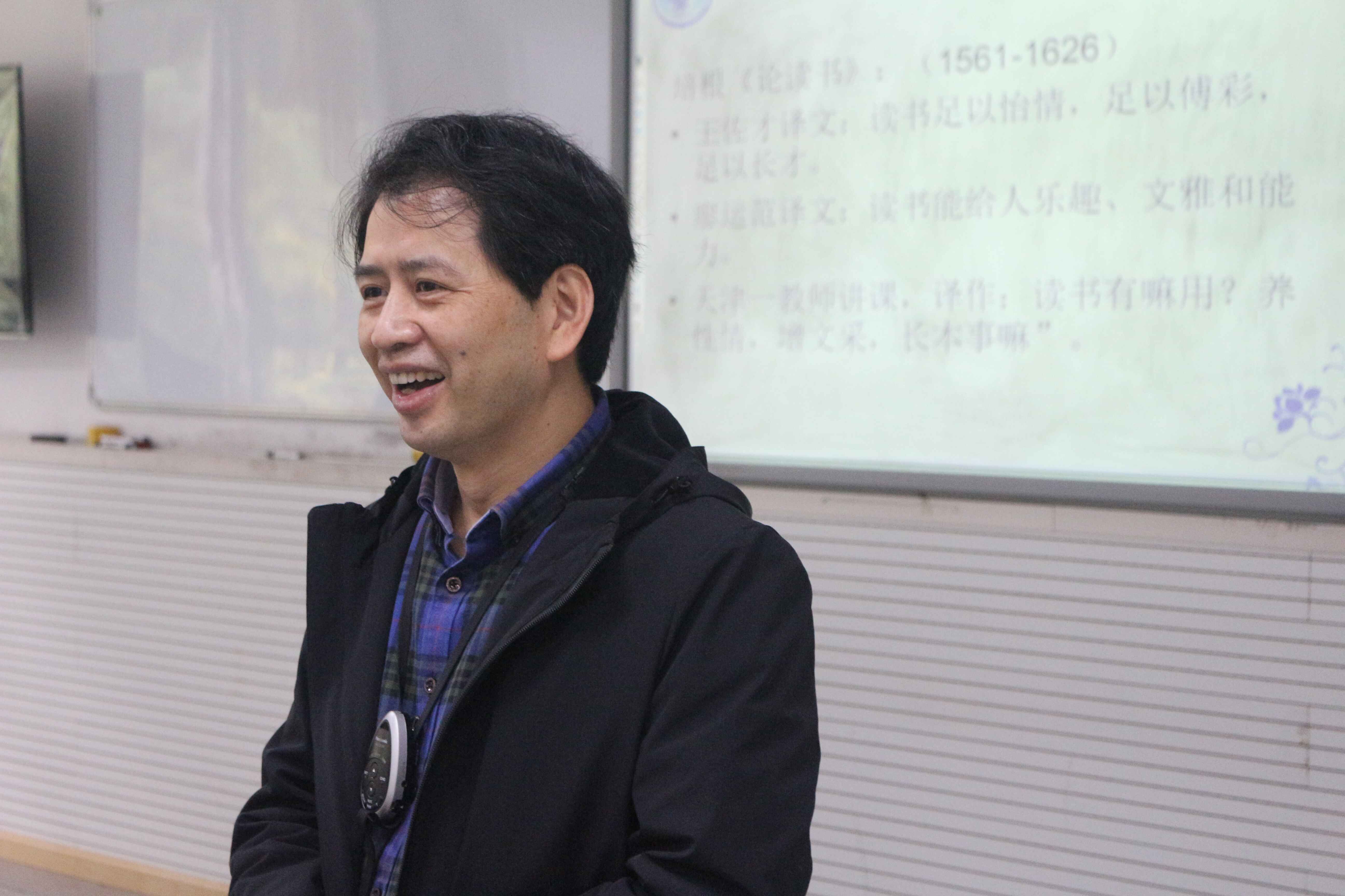 陈家尧老师以一首《荷塘月色》作为讲座的开头,让学员们在悠扬的旋律中体会歌词与意境构成的美。紧接着陈老师提出了言语的三个特征,一是不可小视;二是关于心灵;三是关乎个性。为了加深学员对这三个特征的理解,陈老师还就每个特征列举了生动鲜明的例子。随后,陈老师又对言语的奥妙之处作了进一步的深入讲解,他提出言语有十味,一是情趣、理趣与智趣;二是形象、张力、新颖与畅达;三是色彩、节奏和声韵。在讲解言语的情趣时,为了让学员们更好的理解情趣的特点,陈老师请了两位学员朗诵陈村的《一天》片段,从学员的表情、语气等方面分析其对作品的理解,同时陈老师也与学员交流了自己的诵读方式,从而引出了抒情手法与文字的关系。接着,在对言语的形象、张力的讲解中,陈老师反复强调要学员们注意揣摩文字,文字直则无趣、直则无味,要看到文章中意脉的流动。