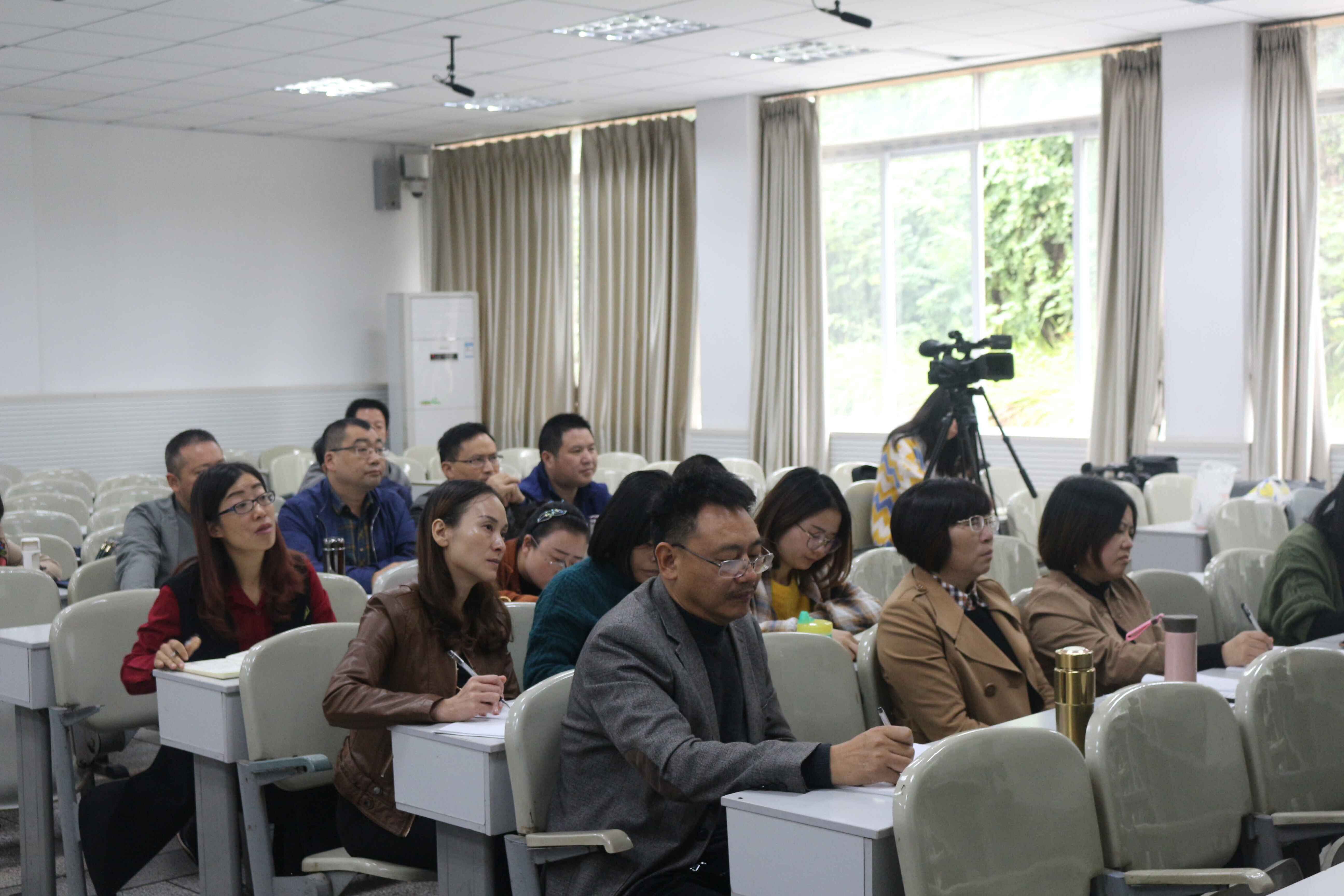 10月14日上午8点30分,公司特邀重庆市教科院中学语文教研员、西南大学硕士研究生导师陈家尧老师,于第五教学大楼北201多媒体教室开展了以“言语的味道”为主题的专题讲座。国培计划初中语文组全体成员参加了此次讲座,由公司易晓慧老师主持。
