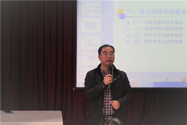 11月11日上午8点半,于军民老师在中文楼501教室为国培初中组学员开展了《群文阅读的理论与实践》的讲座。