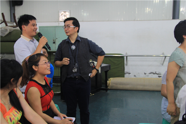 7月10日早上8点20分,毕业于台湾辅仁大学,具有深层沟通表达技巧的新世纪资通(速博电信)训练发展暨质量评量讲师、中关村体验教育培训科技协会资深培训讲师郭中立老师于音乐楼第三舞蹈室给小学语文组75位老师亲授体验学习的教学手法,旨在通过本次学习提升老师们的课堂教学技巧。