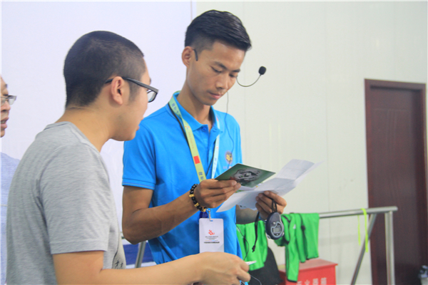 9点20分,老师将75人分为4个小队,选出队长,完成自己的队旗、口号以及标志等。1队选择一个喜庆的大红配上“追击闪电,实现超越”的霸气口号在四个队伍中最是夺人眼球,其他队的队员们在大家共同努力下也迅速完成团队构成要素。在培训老师的引导下一个非常高难度的互传乒乓球游戏有序开展。游戏分为两轮,第一轮每个队的队员们围成一个圆,每个人手握槽形半体管,让球在每个人手中的管子里迅速传开,在球不落地的情况下,球传完一周所用时间最少的那个组队伍获胜。第二轮增加了一定的难度,改为两个球,寻求另一个队伍搭配完成。经过长达30分钟的精彩角逐,最终1队和3队凭借默契的配合,表现突出,赢得在场老师们连连惊叹叫好,随后导师传达本次游戏的几个技巧。