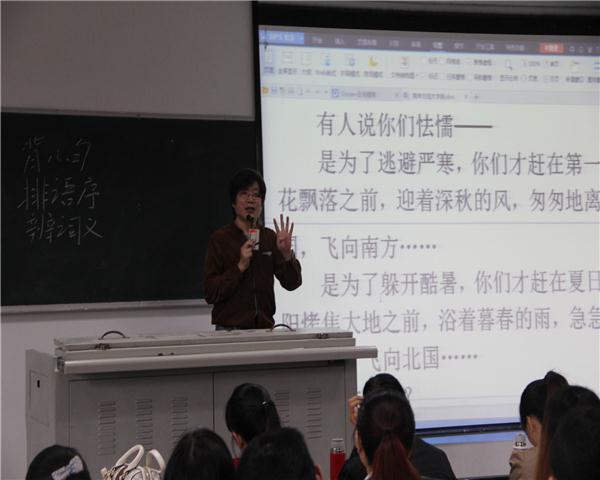 10月26日下午2点50分,在中文楼304,来自清华大学附中的语文特级教师、首都师范大学硕士研究生导师韩军进行了“阅读与写作”的探讨。“国培计划”的小学语文班全体学员与tyc5997太阳集团14级2班员工参加了此次讲座。