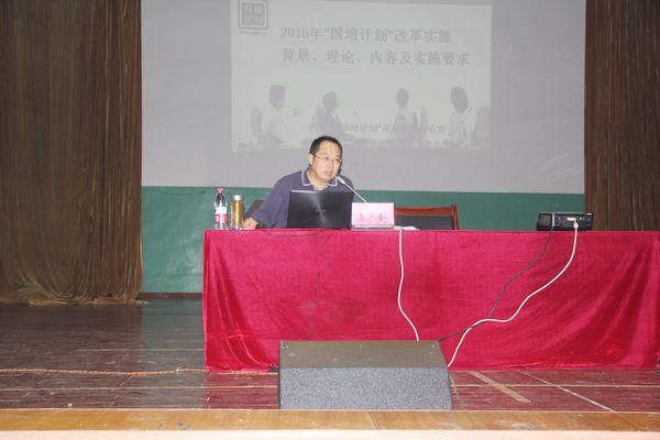10月18日上午,“国培计划(2015)”教师培训团队置换脱产研修项目主题讲座在西区礼堂举行。来自四川师范大学教师培训公司经理李志全副教授就“国培计划”的背景、国家及省内采取的措施,以及实施过程中的重点难点问题进行系统介绍。