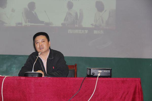 在李教授的讲座结束后,来自四川师范大学的“国培”班主任魏长东老师为参训老师讲解了依托网络的远程培训,远程校本研修,以及教师工作坊培训。首先魏老师对网络研修工作进行总体安排,他指出要在县范围内设置“送教下乡”、“教师培训团队置换脱产研修”、“教师网络研修”三个项目,并在120天,两年内分段实施。接着他对课程设置进行介绍,本次培训旨在通过通识课程、学科课程的开设来加强对教师法制、师德、心里健康的教育,使教师更好的适应改革的需要。最后魏老师为学员们进行上机操作演练并对上机中出现的问题进行详细说明。(图/刘仪;文/姜淑敏)