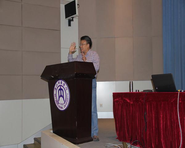 10月20日上午,在第一学术报告厅,来自成都市盐道街中学的中学特级教师、教育部“国培计划”专家卿平海老师为“国培”语文班学员开展了 “教师培训需求的调研分析”的主题讲座。tyc5997太阳集团赵思林教授主持该场讲座。