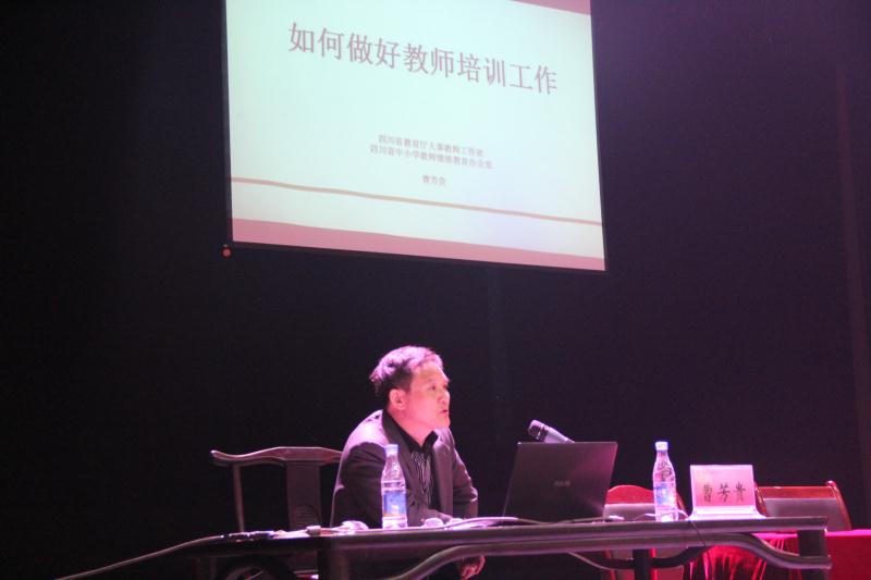 随后,四川省教育厅人事教师工作师范处曹主任发表讲话,他提到了国培计划的显著特征“享受交流、认识,碰撞带来的极大欢乐”。他强调道:“除了要收获快乐成长,还要通过你们去引导、带动身边的乡村教师。”