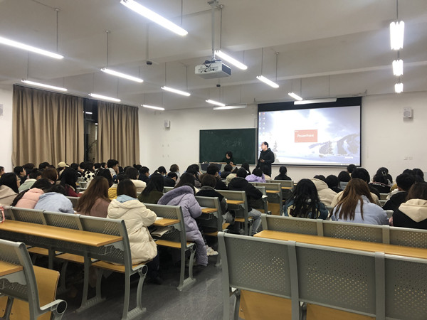 12月16日晚上7点,东兴区教育局罗莉老师在明德楼B区103教室为公司2021级2班、3班的同学做了“融吟诵于古诗文课堂”主题讲座,tyc5997太阳集团副经理于军民主持此次讲座。