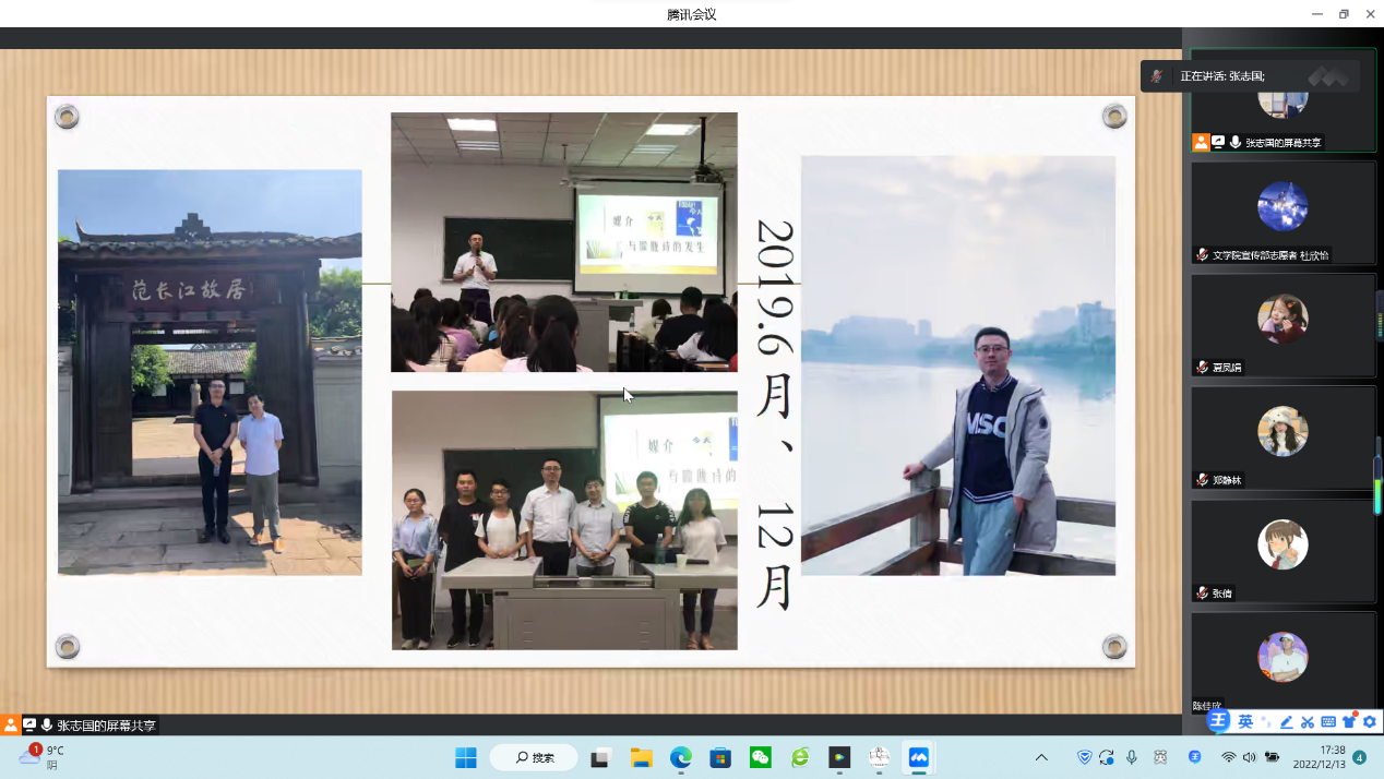 为提高公司员工对文学手稿的认识水平,12月13日下午五点半,公司于腾讯会议开展以“文学手稿的知识考古——以叶维廉手稿研究为例”为主题的学术讲座。主讲人为中美富布赖特学者,澳门大学博士后,美国加州大学访问学者,曾任澳门城市大学助理教授,现为佛山科学技术公司特聘青年研究员张志国,公司党委副书记(主持工作)周艺担任主持人,公司2020级、2021级部分同学参与本次讲座。