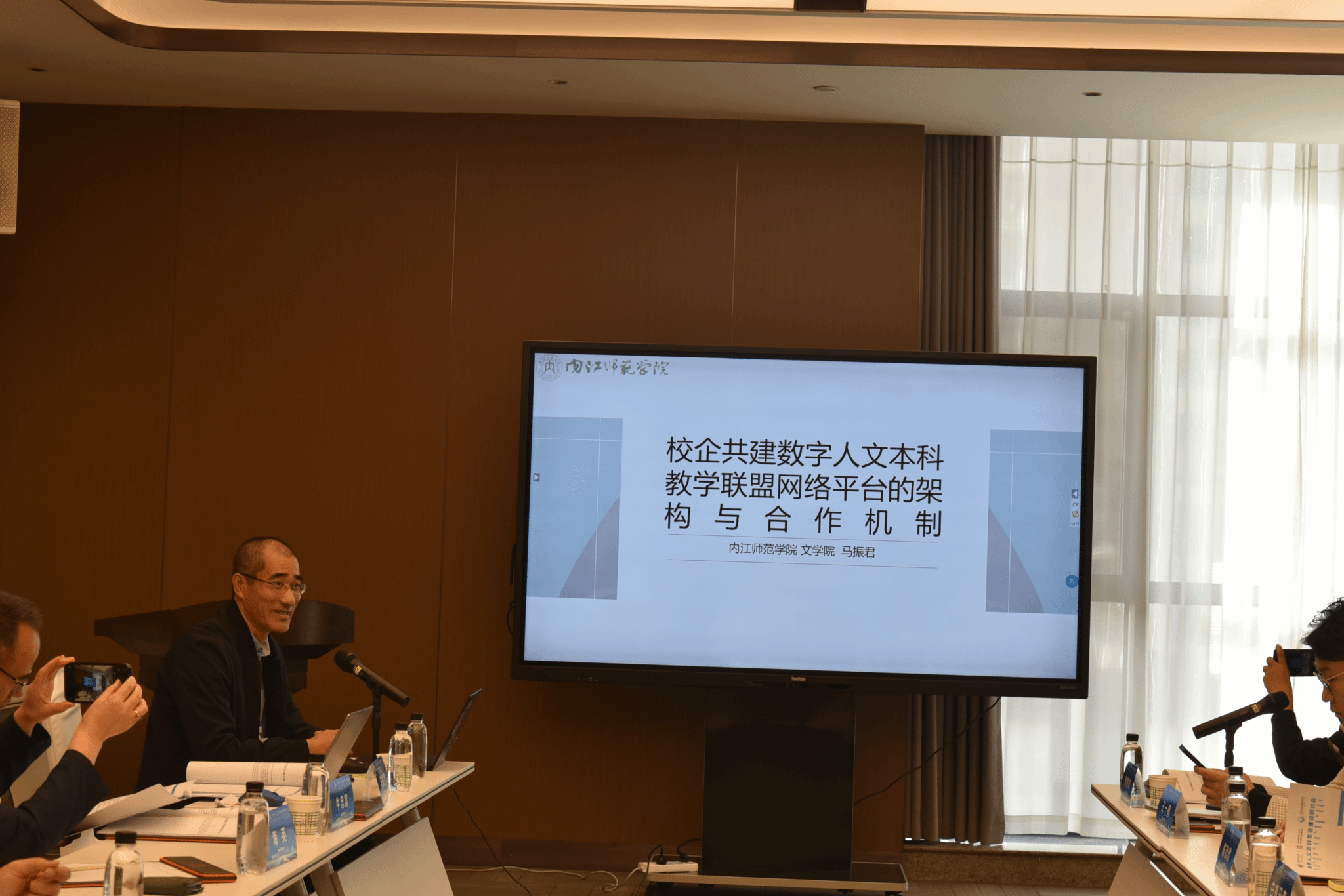 下午13:30开始分组研讨。围绕“数字人文本科专业建设”设立了“数字人文教育的综合实践”“数字人文教学的技术赋能”“数字技术应用与课程论”“数字人文教育的创新探索”四个主要议题。学者们分别从团队建设、课程建设、实践创新、理论研究等方面分享见解和成功实践案例。公司院马振君老师参加了第二组的讨论,担任上半场的主持人,并以《校企共建数字人文本科教学联盟网络平台的架构与合作机制》为题,提出建设校校、校企合作共建数字人文本科教学联盟(或共同体)的必要性。倡导以数字人文企业为技术核心,以高校为共建伙伴,创建数字人文本科教学联盟网络平台,包括教学资源、本科创新项目孵化、各校特色项目、学术社区四大板块,实现资源共享、顺畅交流、合作共赢,切实解决资源不足的痛点问题。马老师的发言得到与会学者的共鸣,认为指出了当前各校面临的困境,提出了切实可行的合作方案,应该专门会商使之落地。