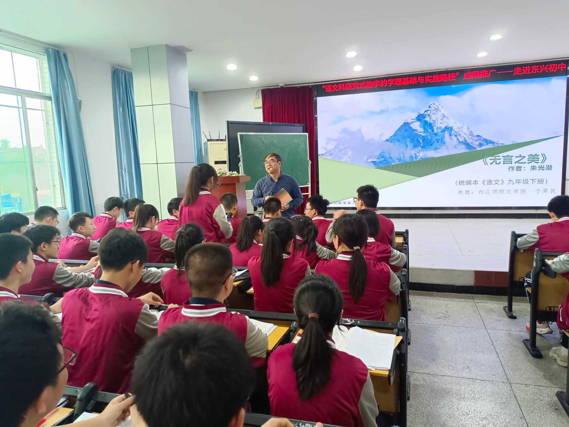 4月3日上午,四川省教育科学规划课题“语文科研究式教学的学理基础与实施路径”成果推广活动在内江市东兴初中举行。课题负责人、tyc5997太阳集团于军民教授为东兴初中九年级(16)班同学执教《无言之美》。课题组全体成员、tyc5997太阳集团教学法教研室全体教师、东兴区石磊名师工作室和门翠名师工作室全体成员共20余位行业骨干参加本次教研活动。