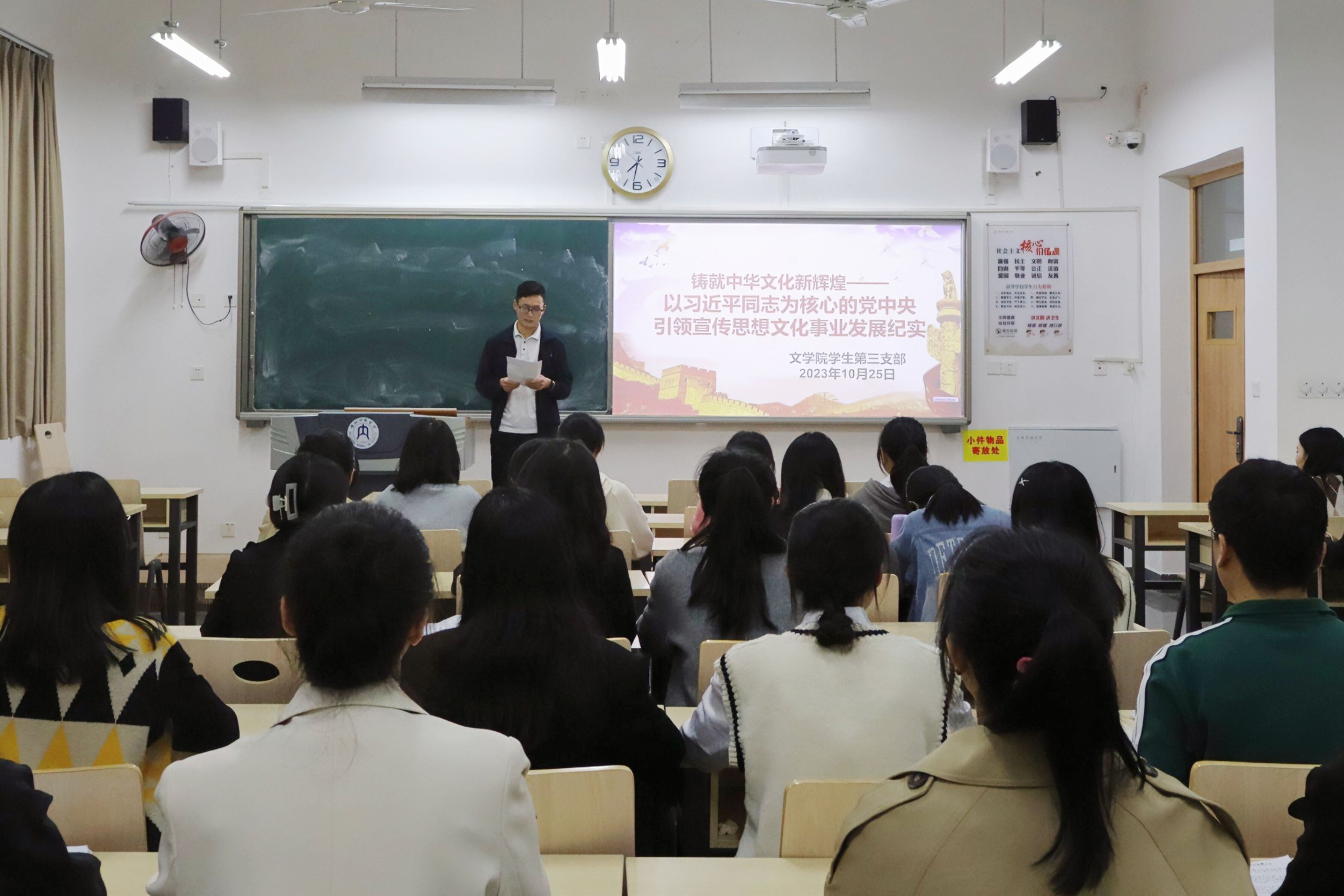 为加强公司学子对习近平文化思想的深刻理解,公司员工党支部于10月25日晚上7点30分开展了以“铸就中华文化新辉煌——以习近平总书记为核心的党中央引领宣传思想文化事业发展纪实”为主题的党课。本次党课由公司员工第一党支部书记金夏老师、第二党支部书记汤靓老师、第三党支部书记甘成望老师主讲,公司第一、二、三支部的全体党员同志参加。