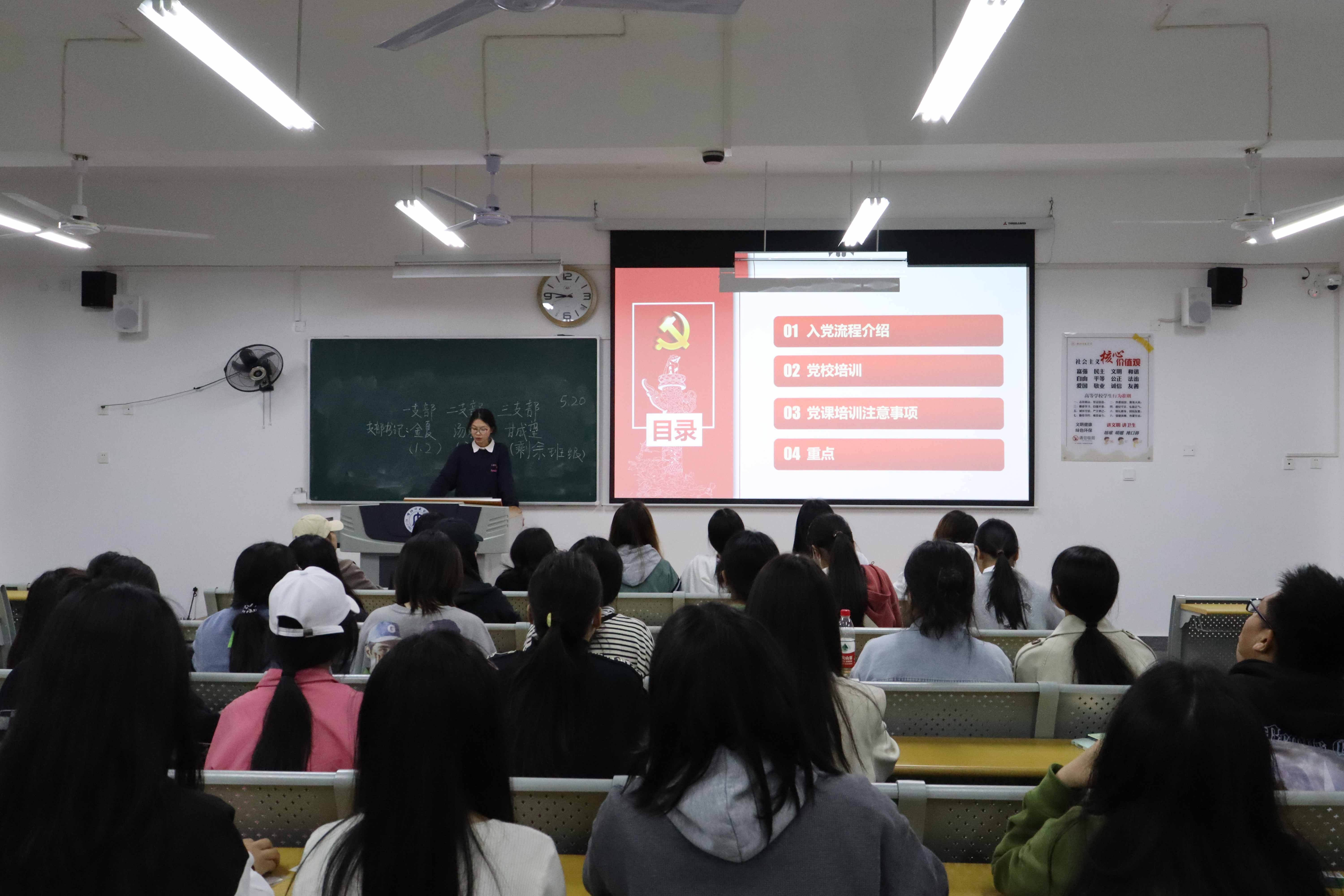 会议伊始,王倩同学向所有入选本期入党积极分子的同学表示祝贺,并谈到作为入党积极分子,同学们要时刻保持思想上的先进性、行动上的超前性,要端正自己的入党动机。紧接着,她从入党流程、党校培训两个方面展开动员工作。她讲到,加入中国共产党需要通过严格复杂的入党流程,因此要求各位入党积极分子在党课培训期间,要做到上课认真听讲,态度端正。随后,王倩同学向大家阐明了党校培训中的注意事项,如党课时间、上课地点、课堂纪律等,她告诫同学们要遵守纪律,做到不迟到、不早退、不旷课,严格约束自己。