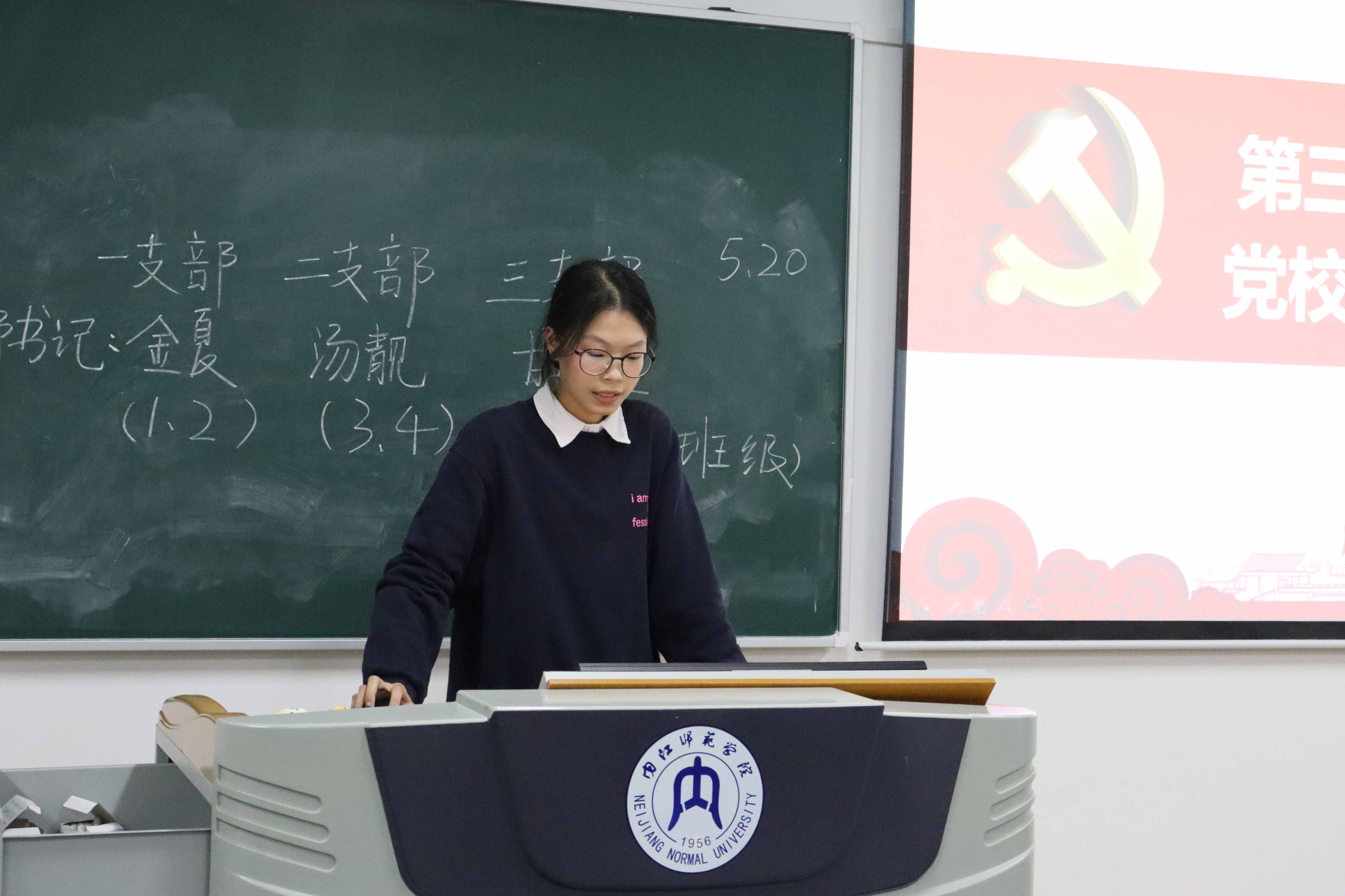 最后,朱颖同学给同学们详细讲述了关于结业考试的注意事项和综合成绩评定标准。她提到,学员综合成绩由结业考试成绩、考勤成绩、学习笔记成绩、学习强国成绩四个部分组成。通过朱颖同学的讲解,各位学员认识到了党校培训的重要性,为今后党课的顺利开展奠定了基础。