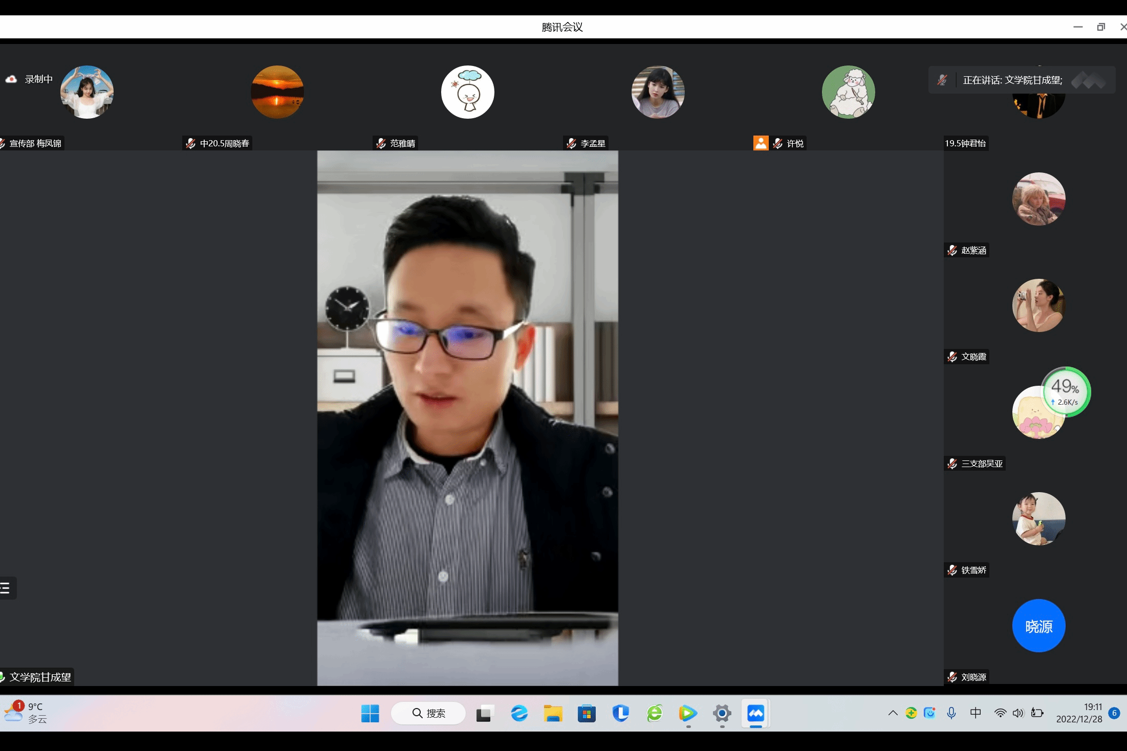 在第三党支部的党课中,甘成望老师从“中国在国际上面临的挑战”“国际形势变化的有利条件”等四个角度讲述了党的二十大后应如何应对国际形势的问题。随后,甘老师指出,面对当前的国际国内形式,各位同志们应增强自己识变、应变、求变的本领,及时调整自己的学习和生活方式。