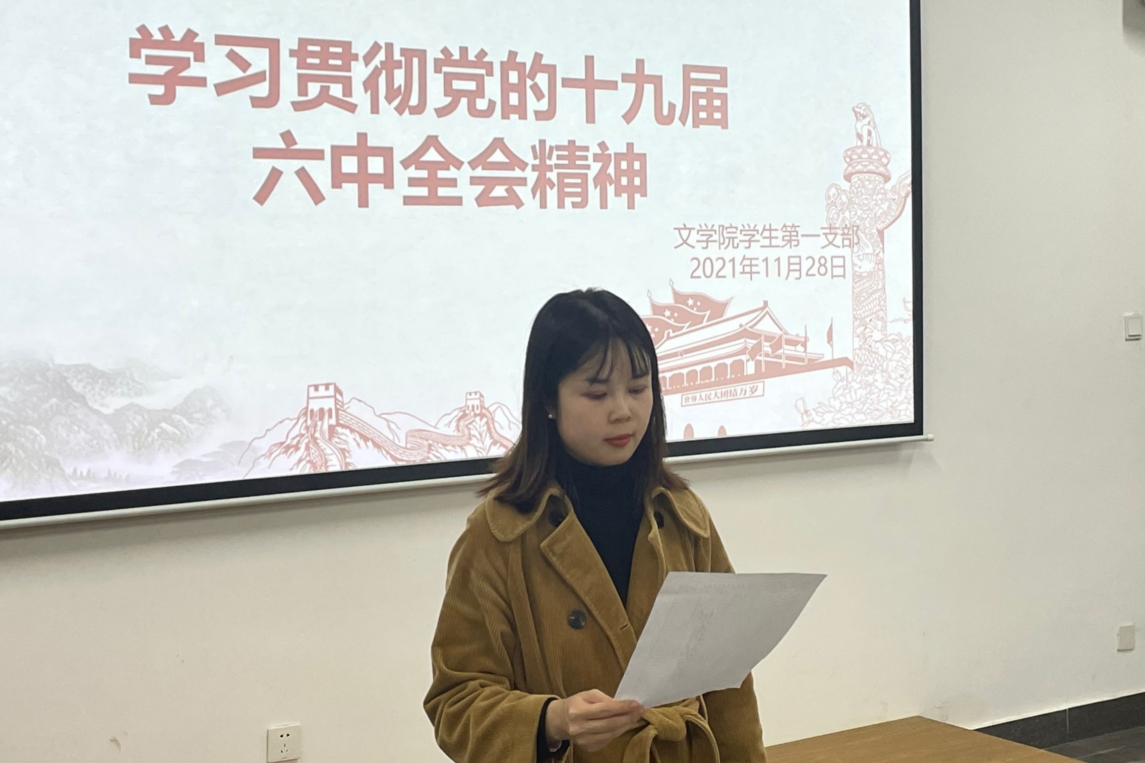 会议开始,金老师带领第一党支部成员认真学习了党的十九届六中全会重点内容及主要纲领,让大家对此次会议有了初步认识。紧接着,大家针对会议的总体要求、主要任务、基本内容、会议指示等方面展开讨论并积极踊跃发言。其中,周道同学表示此次组织生活会加深了自己对于十九届六中全会精神的理解,也让自己之后的学习有了更明确的目标。同时,金老师强调作为员工党员要起到先锋模范作用,严格要求自己,更好地为大家服务。随后,蒋晓琪同学提到了大家要牢固树立为人民服务的观点,切实增强贯彻党的群众路线的自觉性和坚定性。最后,金老师针对此次会议进行了总结,希望大家在今后的学习生活中敢于迎接挑战,砥砺前行。