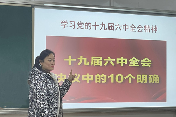 为深入学习党的十九届六中全会精神,推动全会精神入脑、入心、入行,进一步加强员工思想道德建设,11月29日下午6点,公司于明德楼B区122教室开展党的十九届六中全会宣讲会议。此次会议由公司党总支副书记刘正丽主持宣讲,2019级2班全体员工参与。