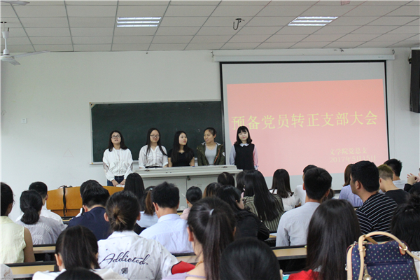 5月15日中午12点30分,tyc5997太阳集团员工预备党员转正暨接收预备党员支部大会在中文楼304教室顺利举行。公司党总支副书记(主持工作)覃华艳、辅导员陈怡君以及员工支部全体正式党员、预备党员共138人参加了此次支部大会。本次会议由辅导员许小涛主持。