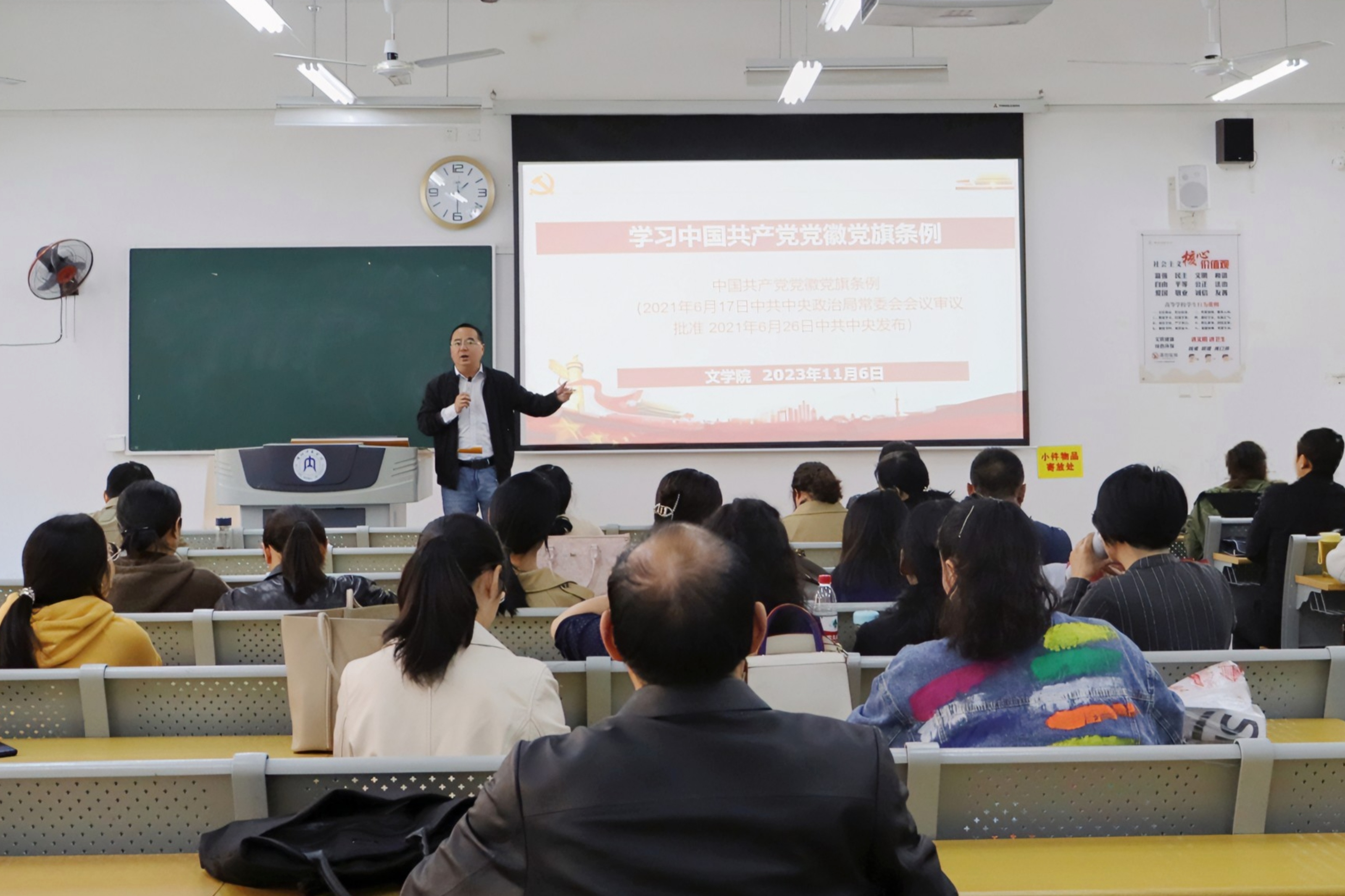 11月6日下午,公司于明德楼B区102教室组织教职工专题学习《中国共产党党徽党旗条例》(以下简称《条例》)。本次活动由公司党委书记周艺担任主讲人,公司全体教职工参与。
