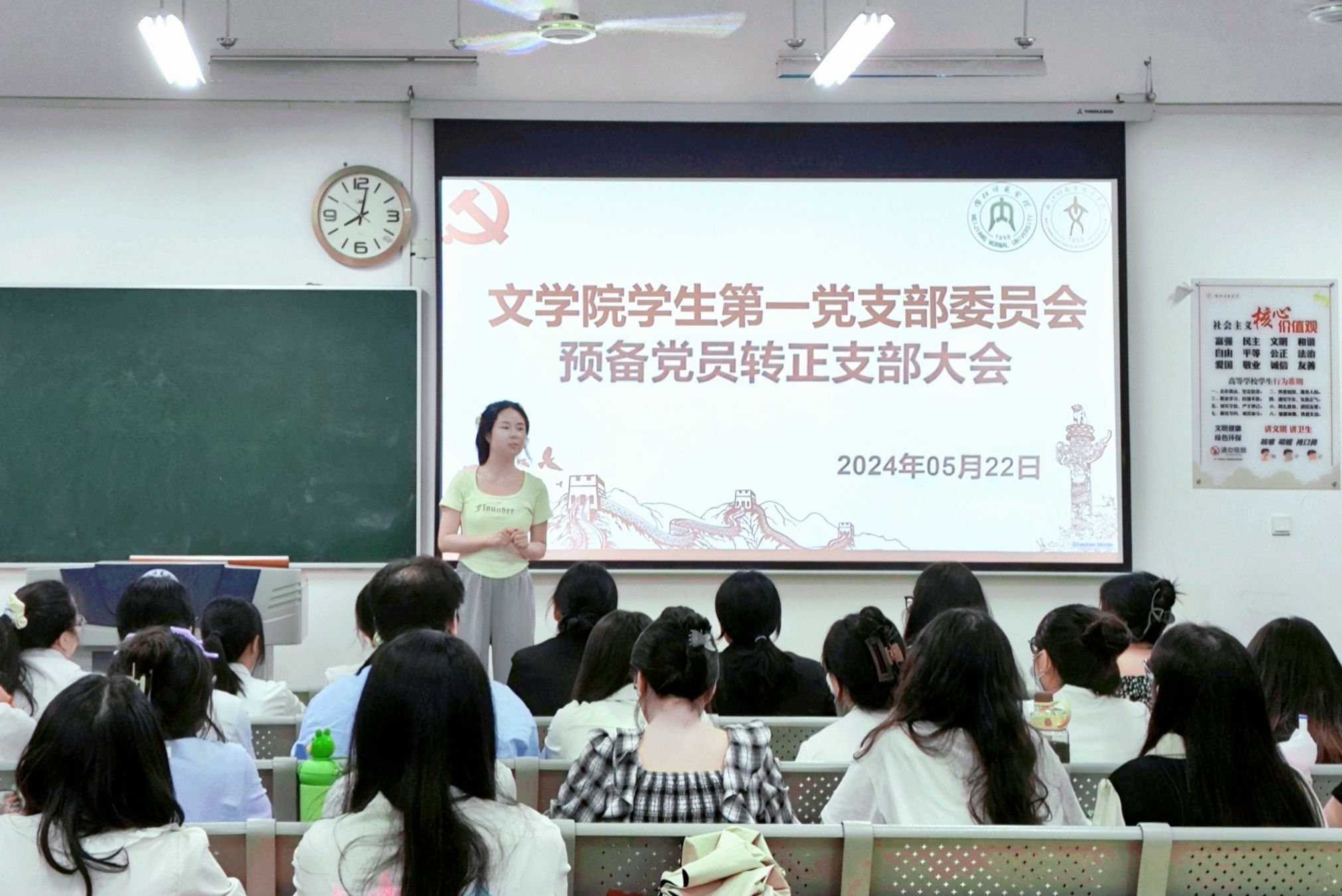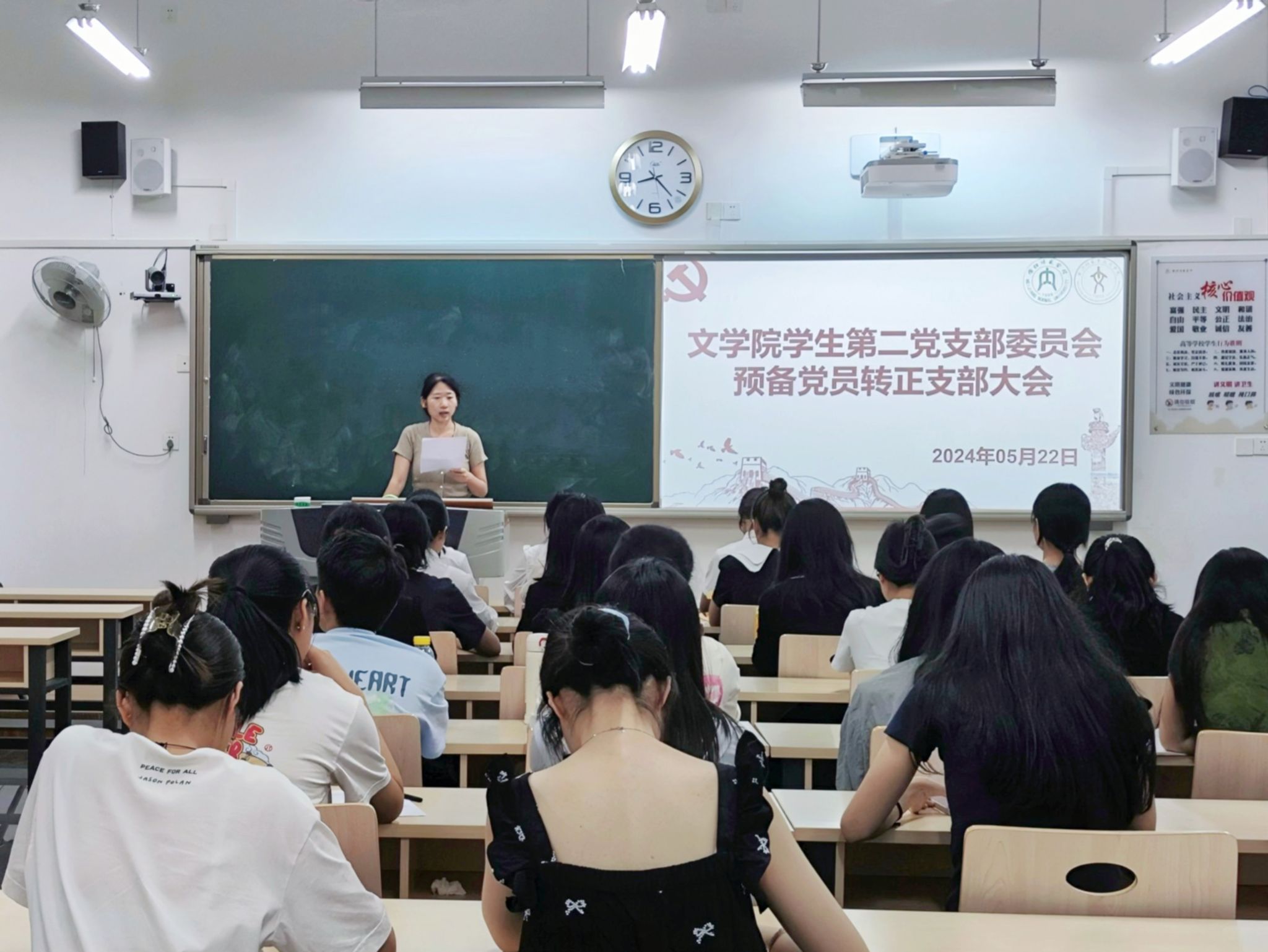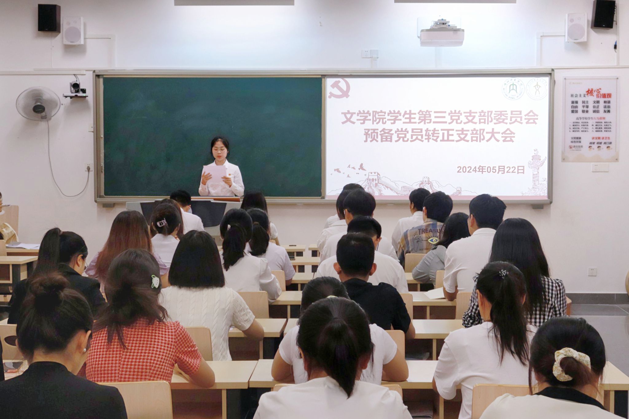 为进一步加强党员队伍建设,保持党员队伍的生机与活力,5月22日晚上7点30分,公司于明德楼A区111、112、113教室召开2024年上半年预备党员转正支部大会。公司员工第一党支部书记金夏老师,公司员工第二党支部书记汤靓老师,公司员工第三党支部书记雷业老师,公司员工第一、二、三党支部的正式党员、预备党员同志共同参与。