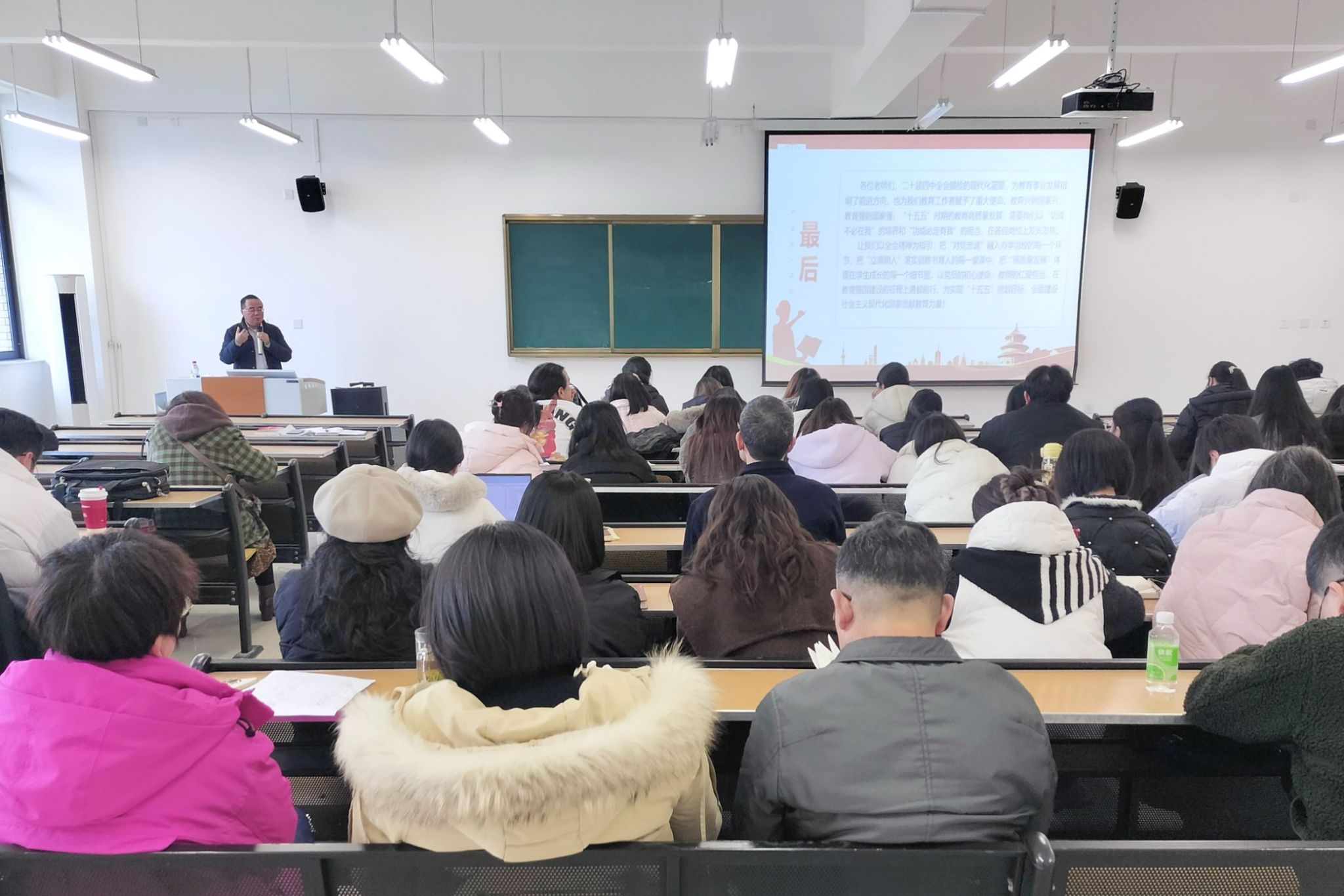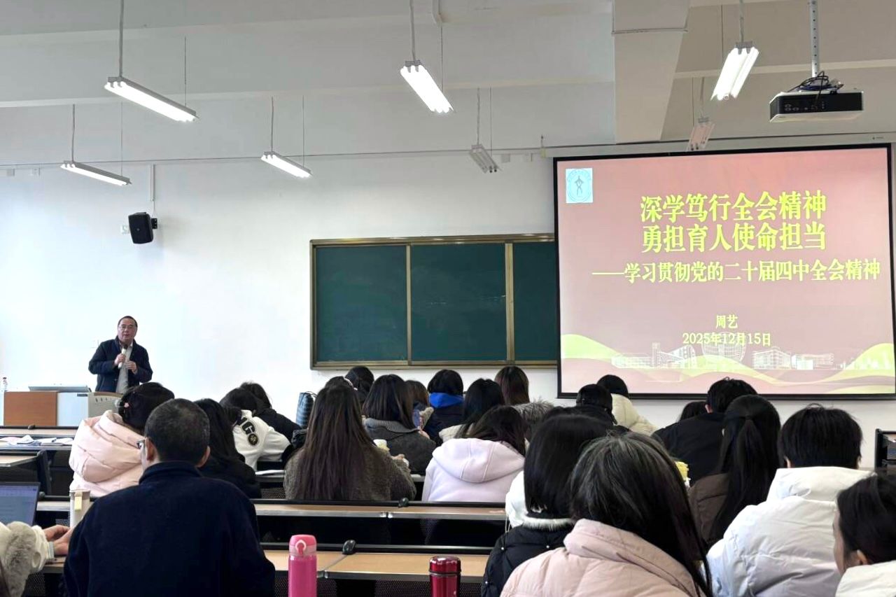 2025年12月15日下午,公司党委在弘文楼502教室召开学习贯彻党的二十届四中全会精神宣讲报告会。公司党委书记周艺以《深学笃行全会精神 勇担育人使命担当》为题,为全院教职工及部分员工党员代表80余人作专题辅导。