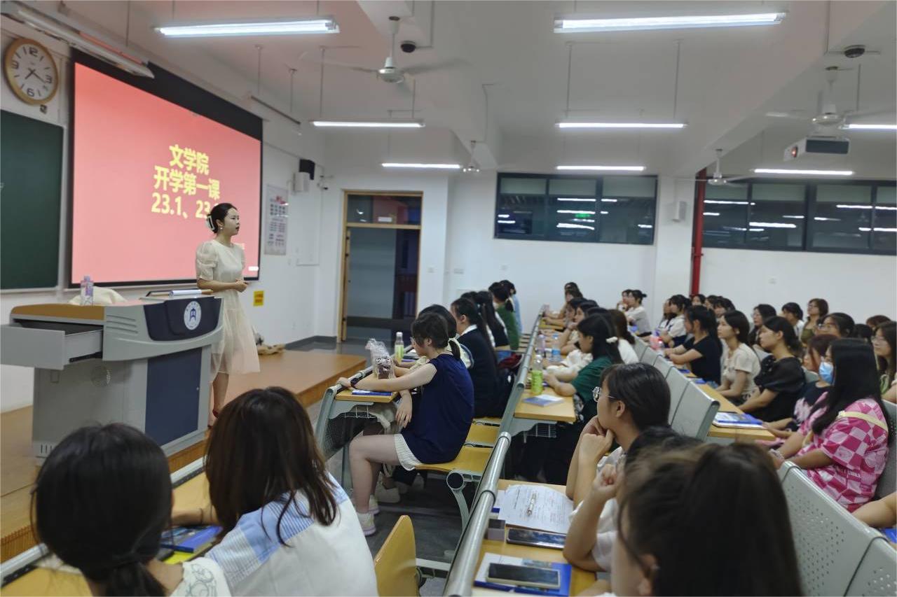 会议伊始,金老师对同学们的到来表示热烈欢迎和诚挚的问候。紧接着,她分别从老员工活的适应、公司与公司的介绍、校园生活与安全、学业及活动学术道德与职业规划、结课展望与寄语等方面内容给新生们进行了详细讲解。其中,金老师重点强调要注意校园安全,提醒新生们要保持警惕,注意消防安全、交通安全、食品安全、宿舍安全、网络安全等,并着重强调要时刻警惕网络诈骗,保护好个人人身安全和财产安全。除此之外,金老师就“习近平总书记来川视察重要指示精神”给新生们做出阐释,希望同学们牢记“党的二十大精神”重要内容,不忘初心、与时俱进。最后,金老师对会议进行总结,并对同学们提出了殷切期望,希望同学们能尽快熟悉校园环境、转变个人角色,投入新的学习。