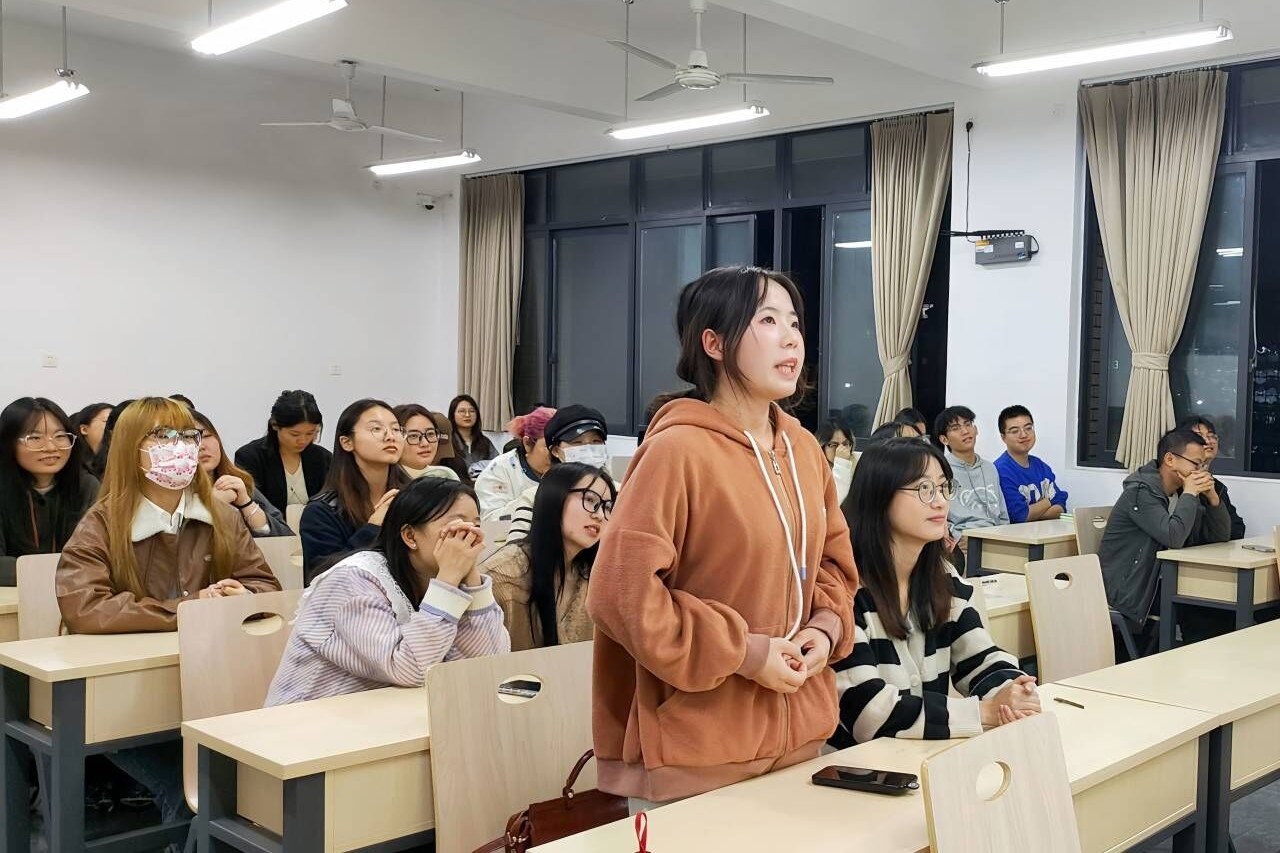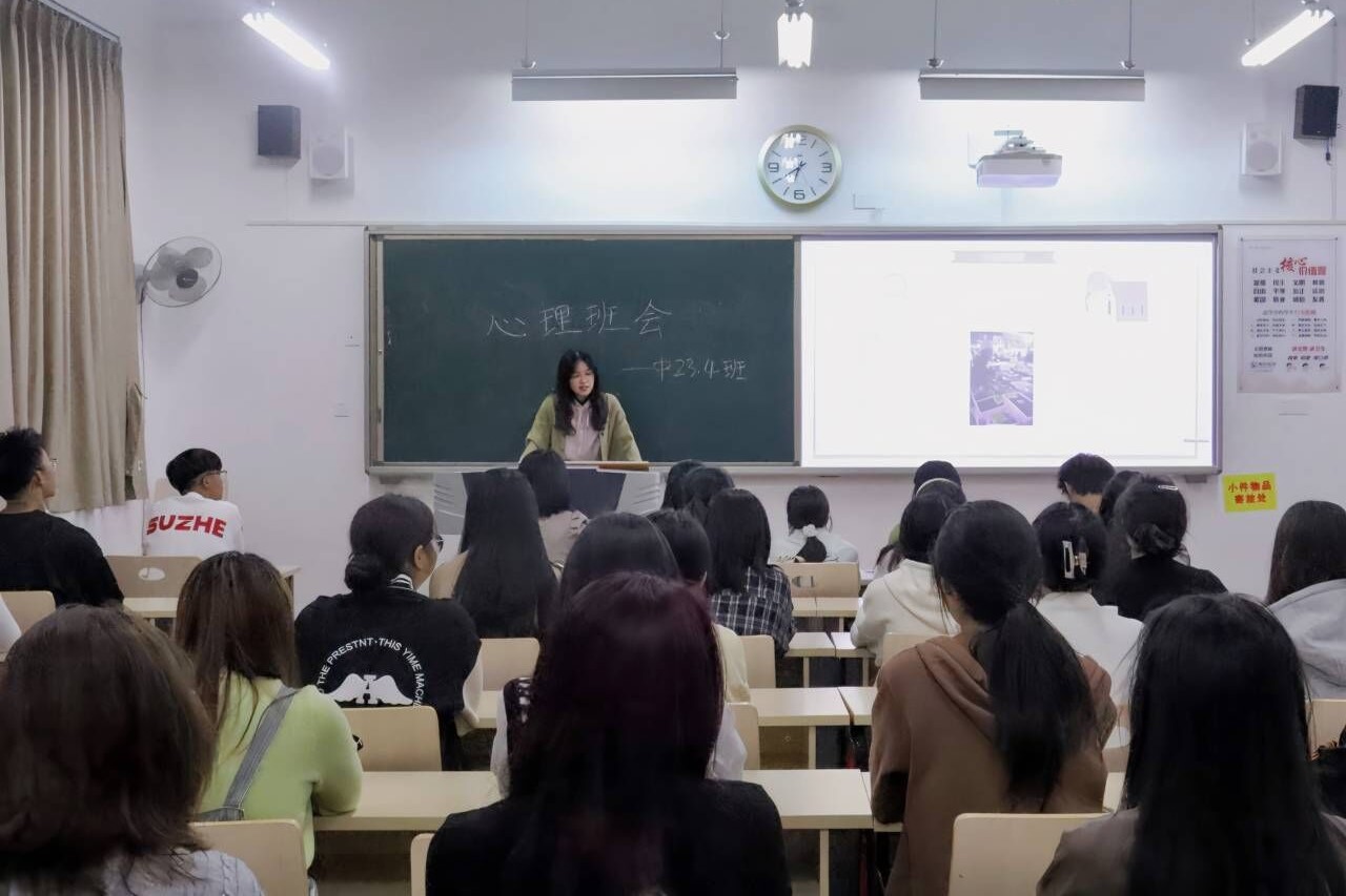 在2021级2班的班会中,汤老师首先结合自身经历和具体实例为同学们讲解了“老员工心理健康”问题,使同学们对心理问题有了更深刻的理解和思考。随后,汤老师主要给同学们讲述了日常行为与心理健康的关系。强调了心理健康的重要性。紧接着,她告诉同学们要养成良好的生活习惯,乐观积极地面对生活,才能拥有健康的心理状态。最后,同学们进行了你画我猜和叠纸小游戏,全班同学参与其中,拉进了同学们之间的距离,让同学们的身心在游戏中得到了放松。