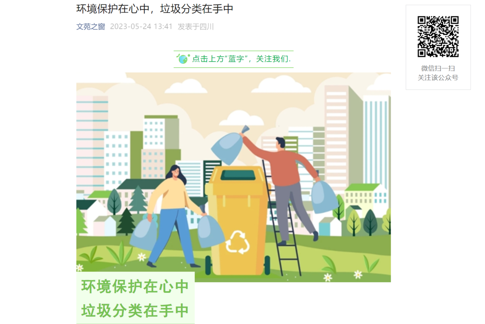 首先,公司利用公众号进行宣传,结合生活实际让同学们认识到垃圾分类的重要性和必要性,号召大家行动起来,培养垃圾分类好习惯。其次,为充分调动同学们的参与积极性,志愿者们还在现场设置了垃圾分类知识问答,以和同学们互动的形式科普垃圾分类知识。最后,公司组织开展了垃圾分类宣传的志愿活动,志愿者们利用钳子、垃圾袋等工具,分组在校园内进行垃圾分类清理,自觉将草丛中的烟头、纸屑捡起并丢进对应分类的垃圾桶里。通过线上公众号宣传与线下志愿活动的联动,进一步加深了公司员工对垃圾分类的认识,使其能在以后的日常生活中养成主动分类、自觉投放的行为习惯。