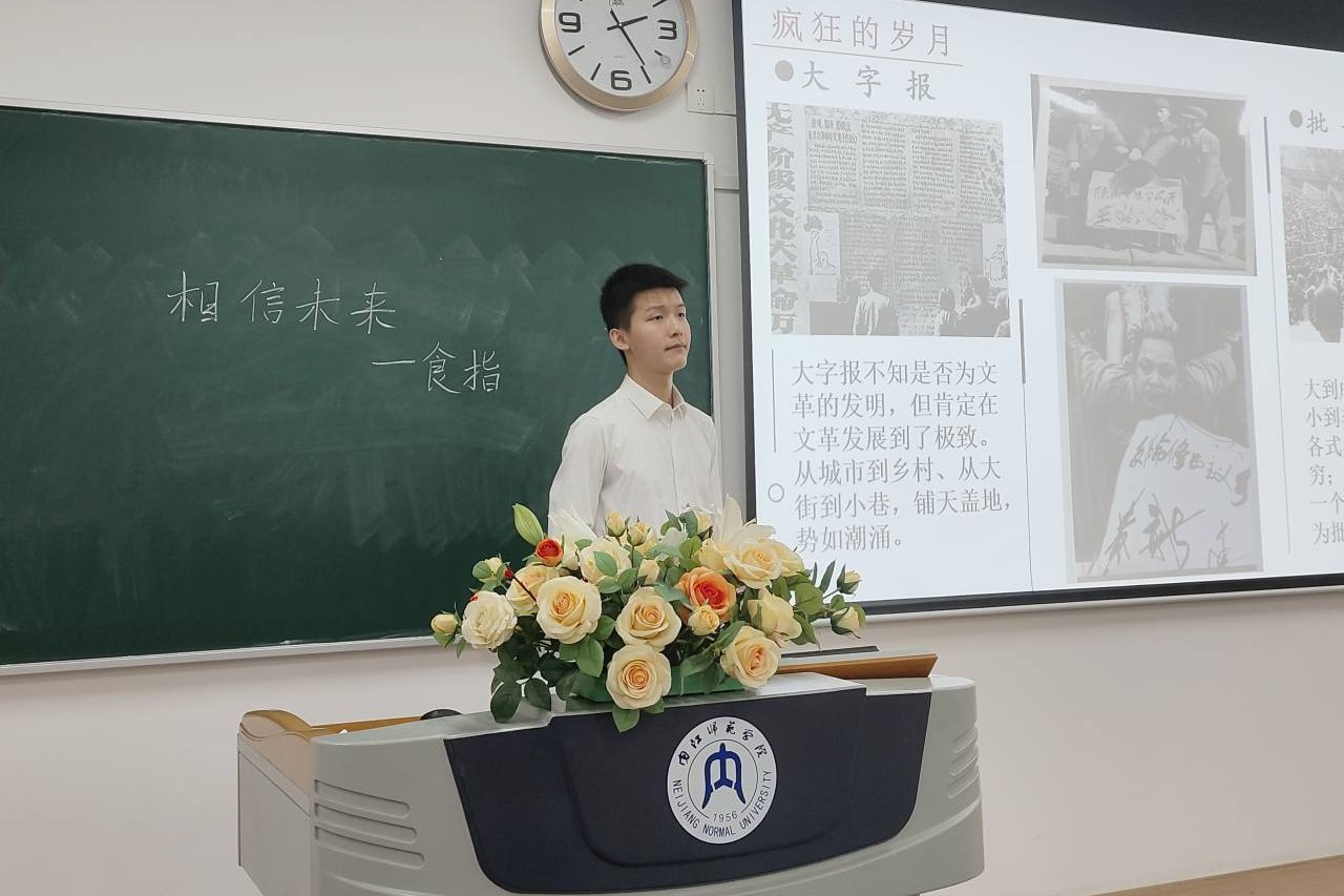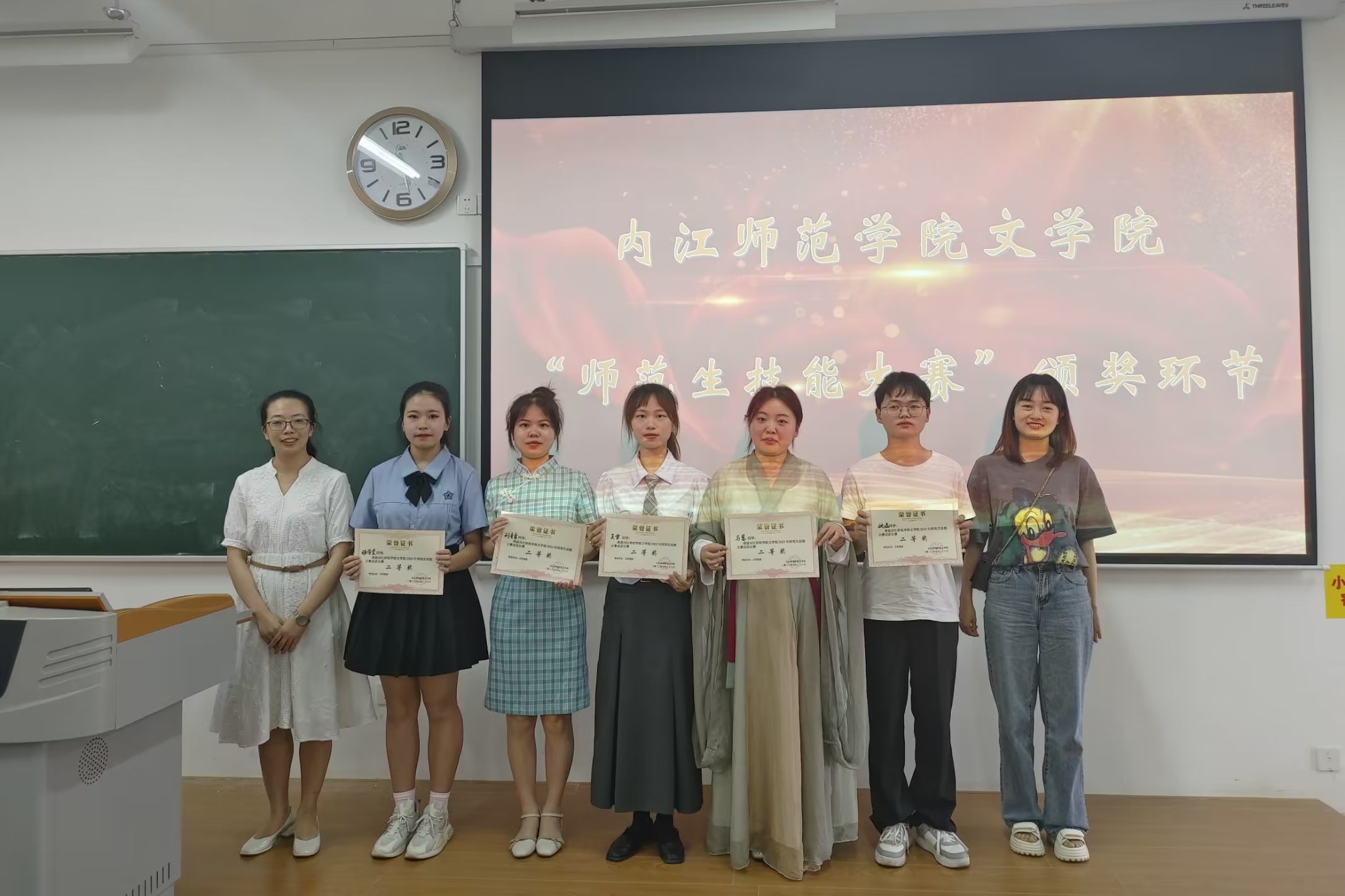 本次师范生技能大赛共有17名选手参加,比赛过程中选手们依次进行10分钟的模拟授课。其中,来自2020级3班的廖永莉同学选取贾平凹所著的《秦腔》为授课主题,她以秦腔戏作为切入点,展开介绍秦腔、农民、土地三者之间的关系,引发了大家对农民应如何应对社会转型带来的强烈冲击这一问题的思考,最后全体员工起立诵读,将现场气氛推向高潮。在10分钟的比赛里,选手们将教学内容巧妙贯穿于生动的演绎中,展现出深厚的语言功底与先进的教学理念,赢得了在座评委的一致认可。比赛结束后,施路老师对本次比赛进行多方面总结。他首先肯定了每位选手的精彩演绎,再结合自身经历告诉同学们,只要走上人民教师这个岗位,就必须要通过日复一日的练习来提高自己的教学基本功。紧接着,施路老师给同学们提出四个建议,一是备课尽量广博,二是切口要小,三是注重选材,四是授之以渔,重点在教员工方法。最后,徐文意同学以其精彩的表现,荣获了特等奖;吴志豪、廖永莉同学获得了一等奖;杨学萱、刘青青、吴雪、马慧、姚磊同学获得了二等奖;朱铭玉、王秀、余青婷、许胜、唐倩、刘于湘、陈愿、龙力立、周溶蕾、何艳阳同学获得了三等奖。