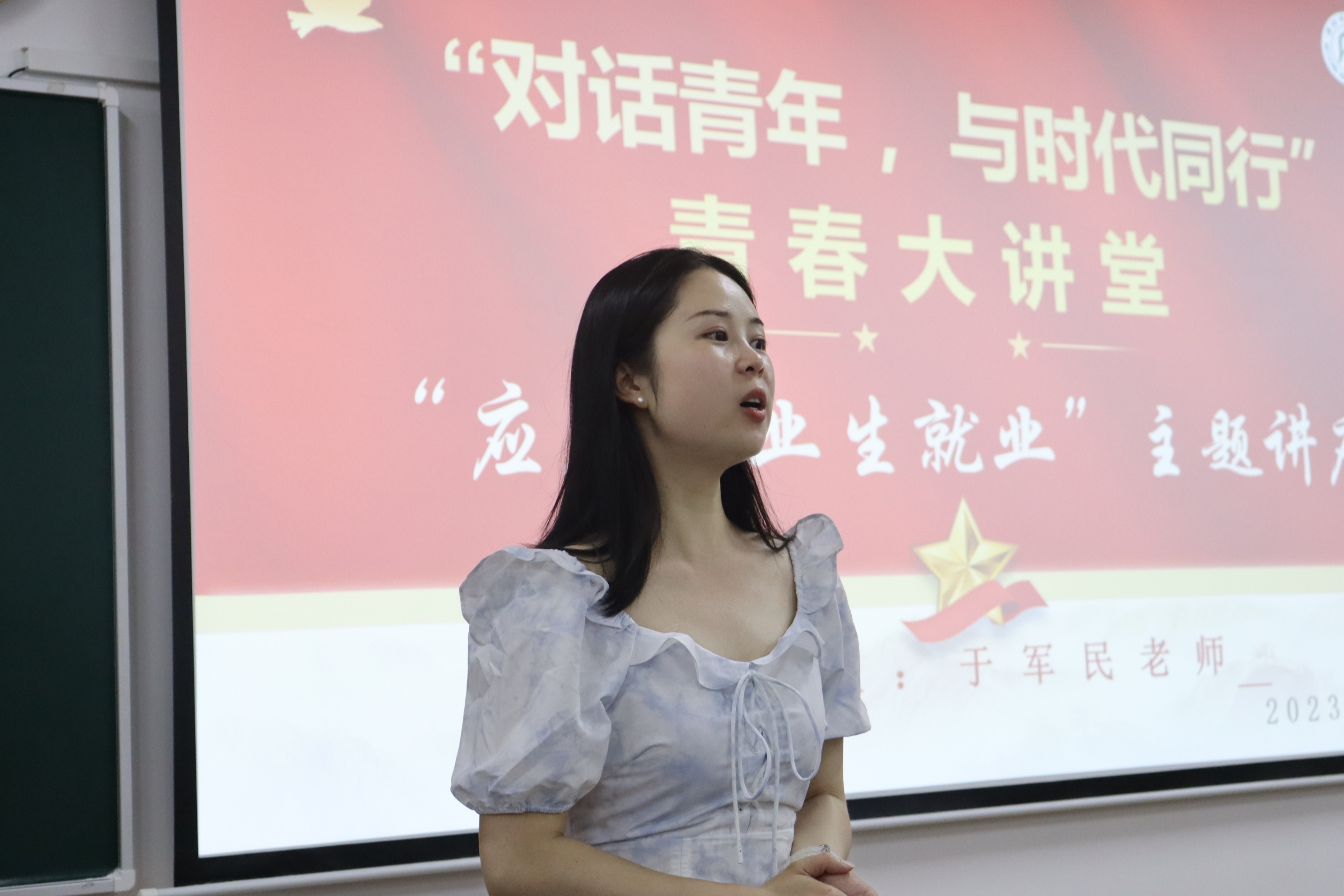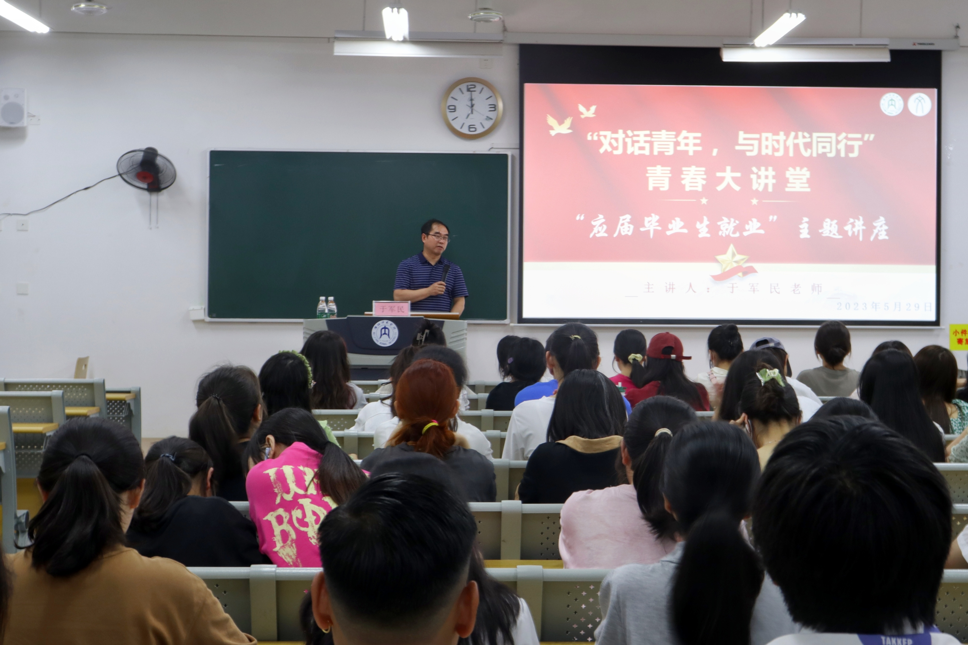 为加快推进公司就业指导工作,落实落细就业指导服务,促进公司学子高质量就业,5月29日晚7点,公司于明德楼B区101教室开展了以“对话青年,与时代同行”为主题的青春就业讲座。此次讲座由公司副经理于军民担任主讲人,公司学工办副主任金夏老师担任主持人,公司2020级、2021级部分同学参与。