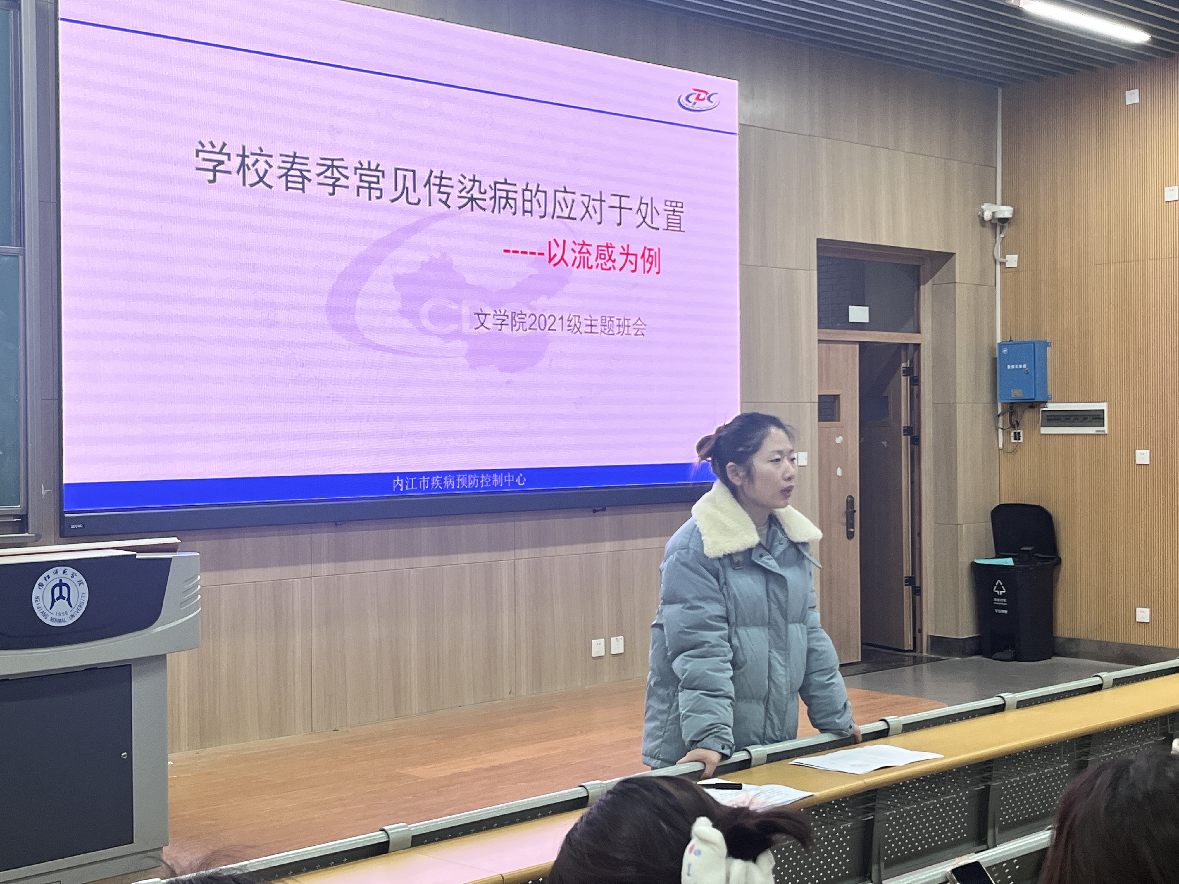 随着气温回升,流感也进入了高发期,如何预防传染性疾病成为了人们最关心的问题。为更好的宣传防治传染病相关知识、保障公司全体师生的身体健康,公司于3月17日至3月19日组织各班相继开展“防治春季传染病”的主题班会。其中,3月18日晚7点,公司2021级部分同学于明德楼B区111教室开展此次班会。班会由公司学工办辅导员汤靓老师主持。