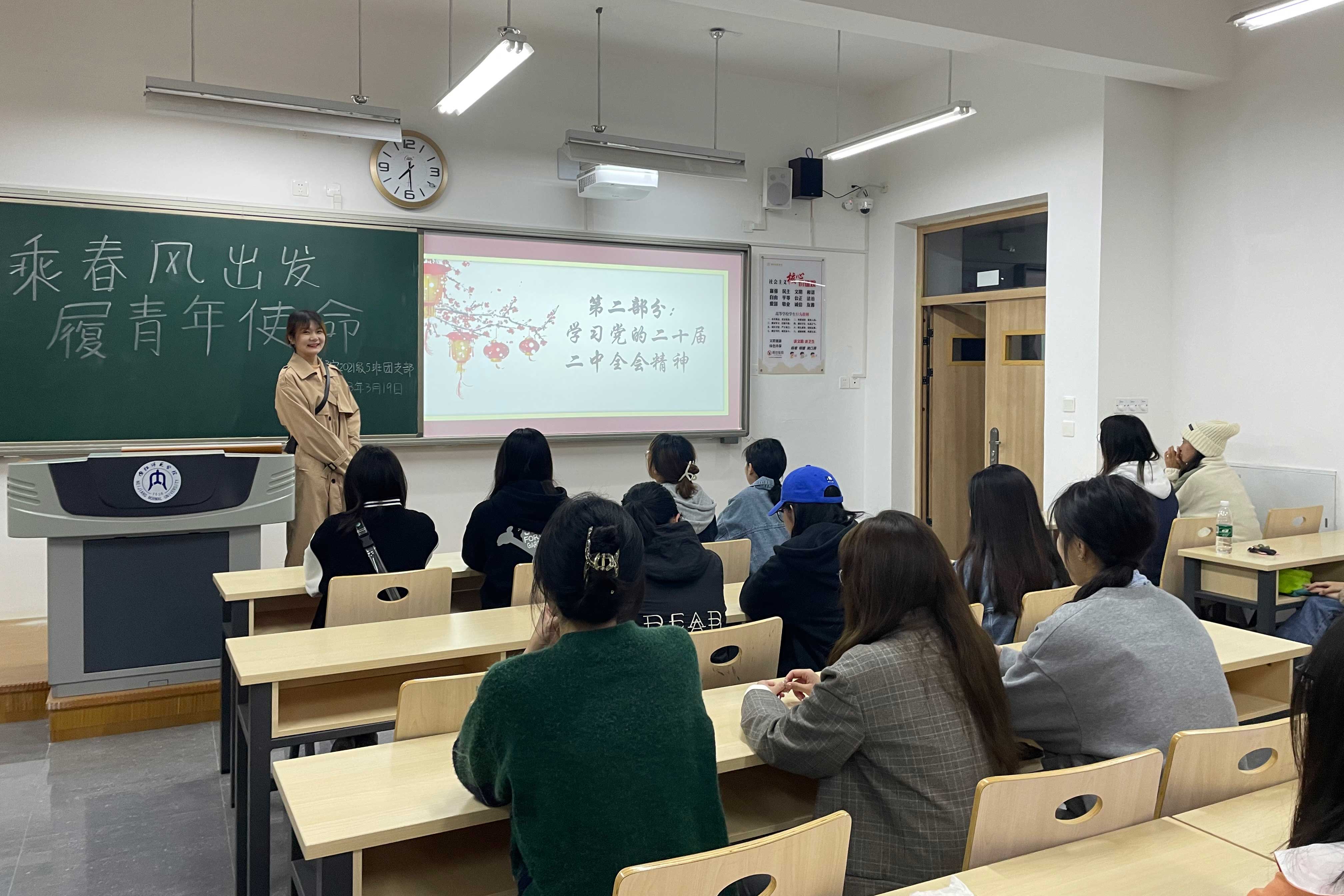 会议伊始,同学们一起学习了《中国共产党第二十届中央委员会第二次全体会议公报》和习近平总书记对深入开展学雷锋活动的重要指示精神。在学习过程中,同学们认识到了作为青年老员工当立“鸿鹄志”,以“赤子之心”担当复兴大任;当展“鲲鹏翅”,以“实干之心”肩负远大期望。随后,同学们通过观看雷锋生平短片回忆了雷锋同志的伟大事迹,并以“老员工应如何传承雷锋精神,践行青年担当”为主题展开了激烈的讨论。其中2019级1班的杨婉秋同学表示,“学以致用”四个字并非简单的口号,而是我们作为新一代青年人应坚持奔赴与践行的学习境界。学习知识只是为了充实理论储备,而“学会”知识却需要我们用知识改变现实,用现实考验知识。