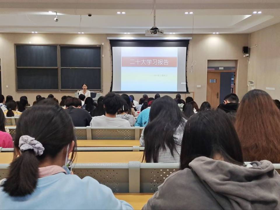 在2021级的班会中,汤老师带领同学们对党的二十大报告中的新思想进行了深入分析,并引导同学们从中不断学习,思考当下青年身先力行、主动实践的重要性。汤老师表示,赓续奋斗精神,厚植青年担当,青年一代是国家发展的未来,是实现中华民族伟大复兴的重要力量,因此,作为时代新青年的我们必须要从现在出发,努力夯实专业知识,不断提升个人素养。