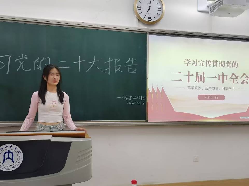 在2020级的班会中,甘老师则提倡同学们要紧紧围绕“爱国、团结、奋斗”等三个关键词,不断思考和学习,努力成长。甘老师表示到,公司2019级同学毕业在即,2020级的同学也即将面临就业,考研等现实难题。值此关键时期,2020级的同学们更应该坚定学习发扬贯彻党的二十大精神的决心,在接下来的时间里尽早树立正确的择业观、就业观,不盲目追求,不随意摒除,以新时代青年形象投入社会实践,奉献社会,奉献人民。