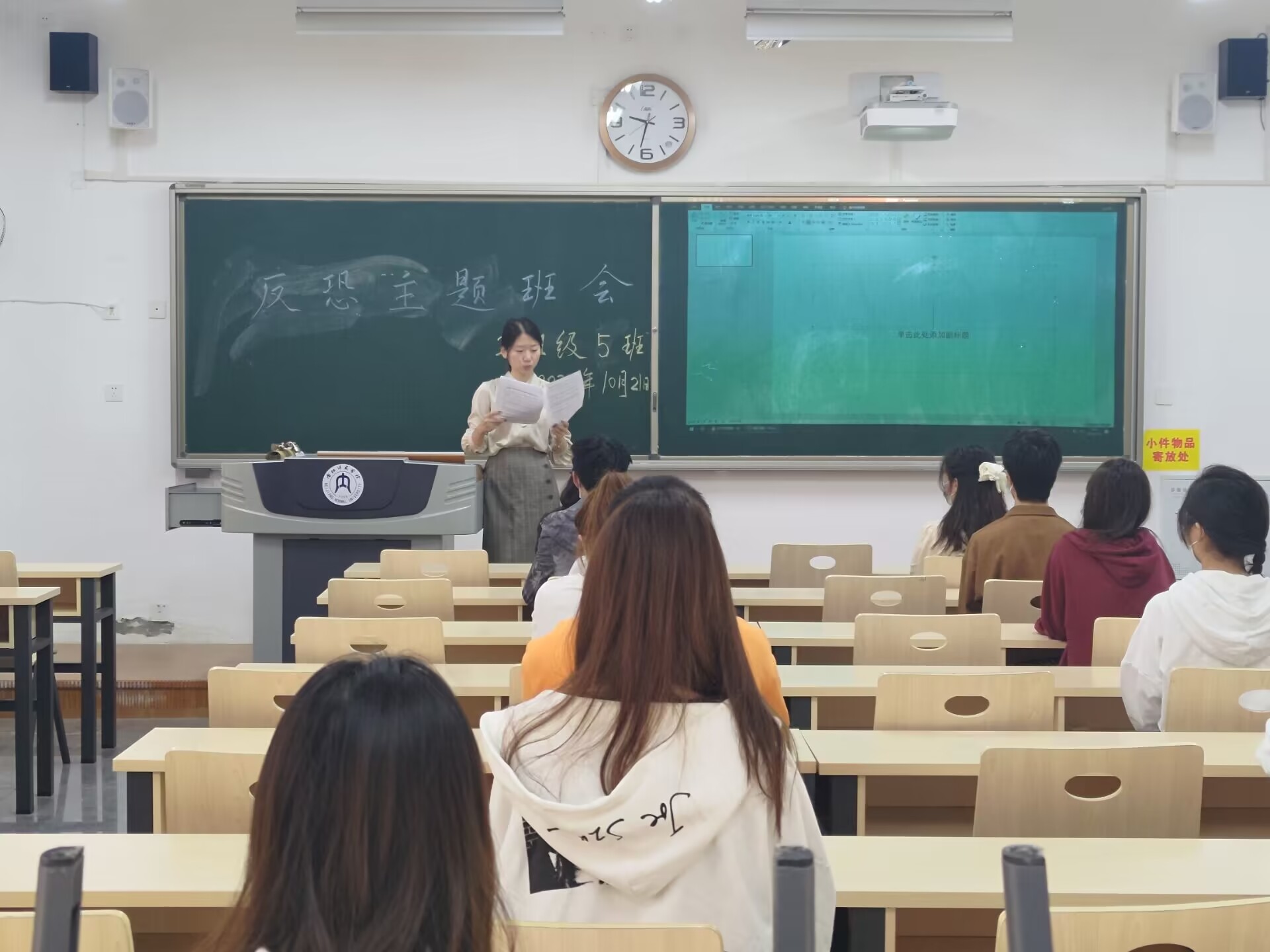 为进一步增强公司师生的“反恐防暴”意识和“自我保护”意识,提高公司师生应对突发事件的能力,公司组织各班开展了“反恐普法安全教育”主题班会。其中,公司2021级5班于10月21日上午9点在明德楼B113教室开展此次班会。班会由公司学工办辅导员汤靓老师主持,2021级5班全体同学参加。