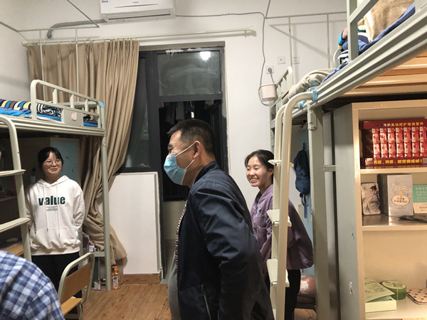 在走访寝室的过程中,周书记特别询问了2020级与2019级的同学们关于实习就业的规划,并针对当前严峻的就业形势,深入浅出地进行了分析,建议同学们转变择业观念、扩大求职区域,选择能够充分发挥自身特长的工作岗位。随后,刘书记通过在宿舍与员工亲切交谈,了解同学们的学习生活状态,并细心叮嘱同学们,在换季之际,要注意增减衣物,预防感冒。接下来,梁经理询问了同学们线上上课的学习情况,并希望大家及时调整好自己的生活作息,从假期状态转变为学习状态,以饱满的热情投入到新学期的学习生活中去。最后,老师们针对寝室的安全情况和整洁程度做了仔细的检查。于经理强调,在寝室要安全用电,严禁使用违规电器,同时提醒同学们要提高安全防患意识,谨防电信诈骗。