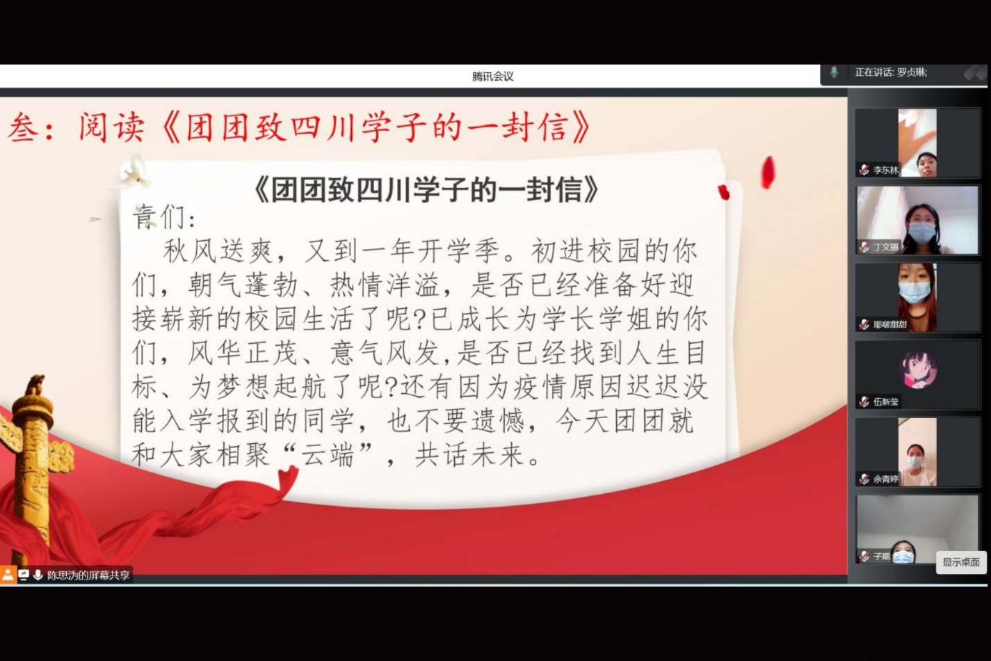 首先,各班同学在团支书的带领下齐声合唱了团歌《光荣啊,中国共青团》,并一同重温了入团誓词。随后,各班团支书带领同学们共同阅读了《团团致四川学子的一封信》,让大家进一步体悟到了新时代青年的责任与担当,并一起欣赏了视频《共青春》,感受先进共青团员的坚定信心和力量,激发了大家浓浓的爱国情怀和责任感、使命感。随后,同学们一起认真研读了习近平总书记在考察中国科技大学时的重要讲话,深入了解了习近平总书记关于青年工作的重要思想,切实感受到了习近平总书记对青年的高度重视、深切关怀、充分信任与殷切希望。团课最后,各班团支书针对此次主题团课作出总结,其中,2020级2班团支书陈思沩同学提到,同学们作为共青团员,要不忘初心、牢记使命、坚持理想,在学习中打牢知识功底、积蓄前进能量,立志报效祖国、服务人民。