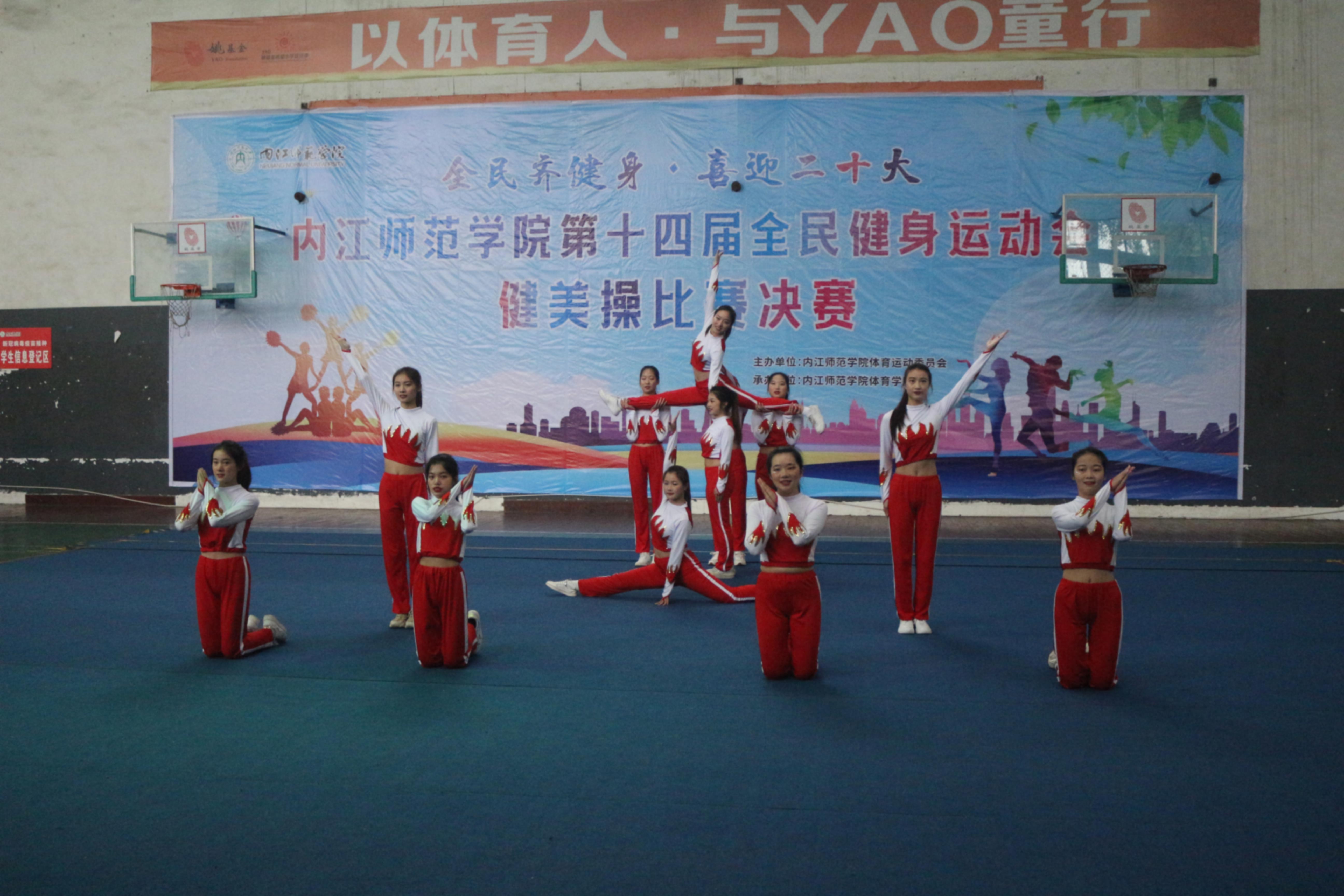 5月15日上午8点至12点,tyc5997太阳集团在桐梓坝校区篮球馆举办了主题为“全民齐健身·喜迎二十大”的第十四届全民健身运动会健美操比赛决赛。出席此次大赛的领导和嘉宾有公司党委员工工作部、武装部部长商林威,党委员工工作部、武装部副部长王强龙,体育公司党总支书记李才宝,体育公司体操教研室主任马传奇。