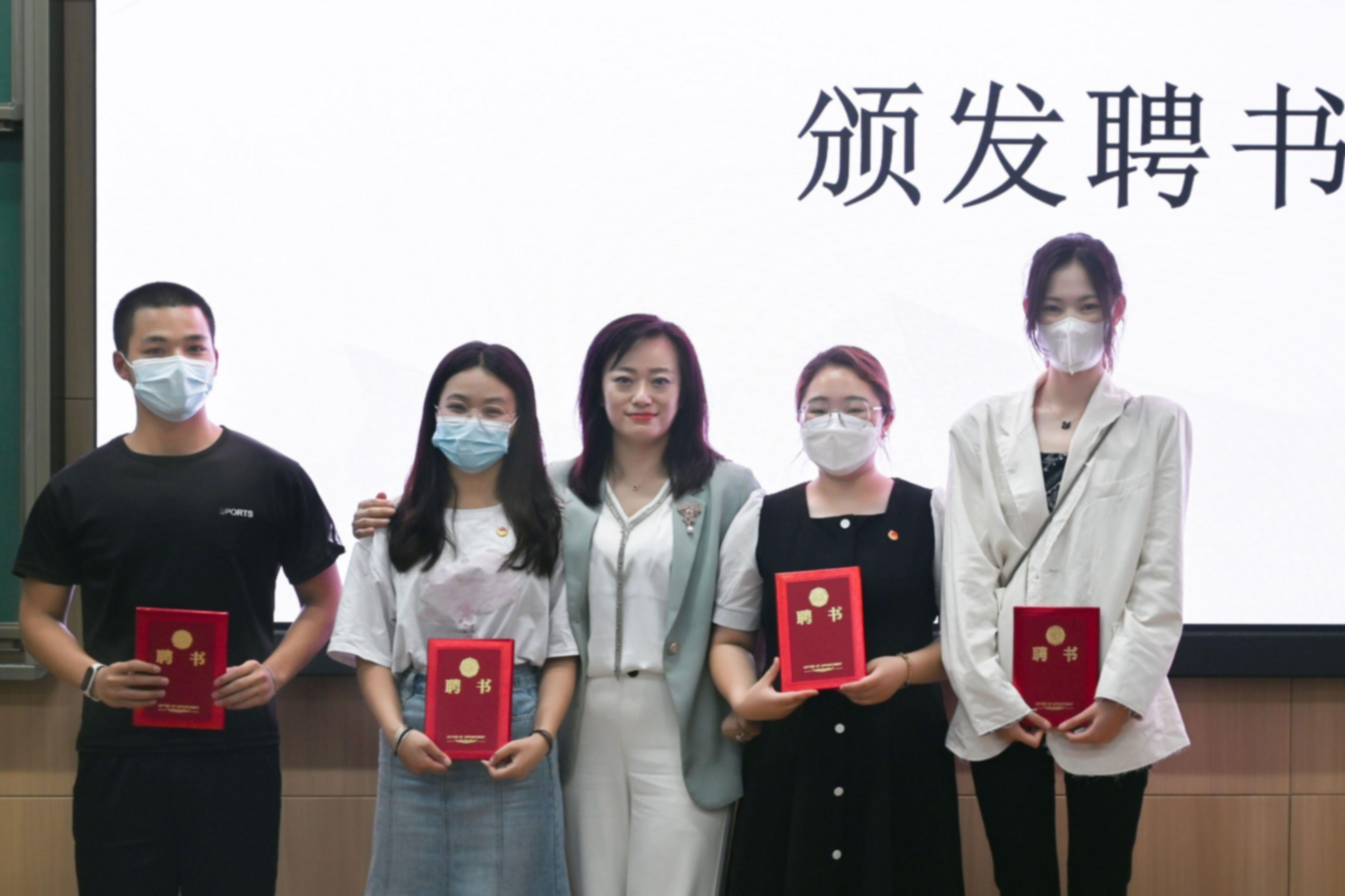 仪式开始,第六届团总支员工会执行主席赵林梅进行发言致辞,她对上一届工作进行了简要的回顾与总结,对老师及并肩作战的同学表达了感谢,同时也对第七届团总支员工会提出了新的期望。紧接着,第六届团总支副书记(员工)龙鑫雨宣读了第七届团总支员工会部门负责人名单并表达了对他们的美好祝愿。紧接着播放了各部门负责人预先录制好的视频,带领大家回顾了在部门中的时光,其中有对部门同学之间的美好寄托和殷切希望,也有对于过往日子的留恋与感慨。简单的回顾过后,公司领导及老师为第六届团总支员工会主席团及各部负责人颁发聘书并合影留念。天下没有不散的筵席,希望大家追求自己所“梦”、爱自己所“爱”、珍惜自己所“有”,过着自己所期待的人生!最后,第七届团总支副书记(员工)刘于湘发表就职演说,她希望公司团总支员工会能够继续发扬“全心全意为同学服务”的优良传统,争取把tyc5997太阳集团团总支员工会越办越好,越办越精彩。最后,由刘书记发表总结性讲话,在肯定了上一届tyc5997太阳集团团总支员工会工作的同时对新一届tyc5997太阳集团团总支员工会的工作提出了要求、做出了展望,并且还针对考研等未来规划提出了一些建议,希望同学们好好学习、做好规划,在老员工活中要多多历练自己。