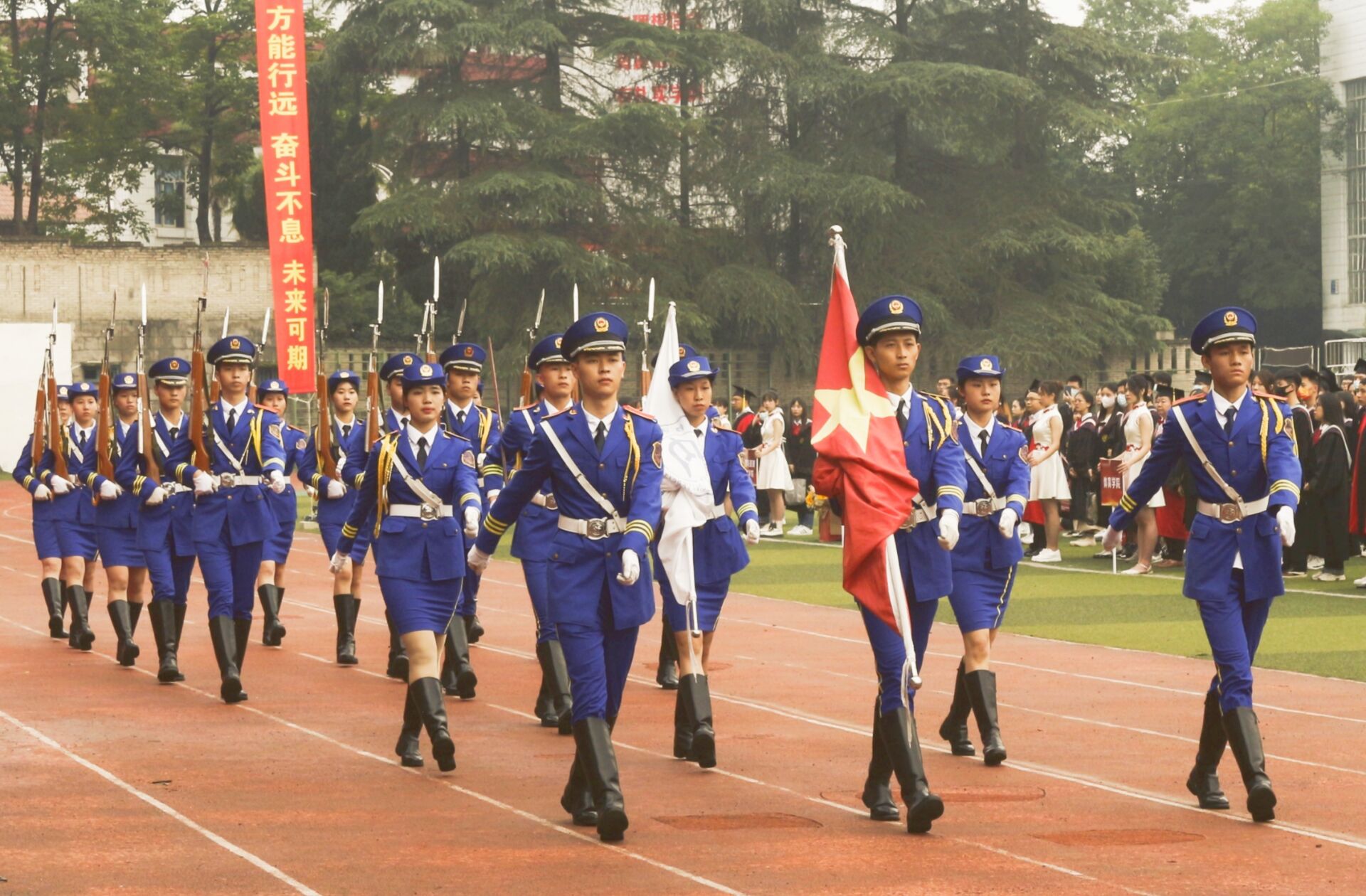 6月10日上午8点30分,tyc5997太阳集团2022届毕业典礼暨学士学位授予仪式在桐梓坝校区西区田径场举行。内江师范公司党委书记张志远,党委副书记、董事长陈晓春,党委常委、副董事长赵明、刘博、郭云东,副董事长李益彬,公司学位评定委员会委员,公司党总支副书记周艺(主持工作),党总支副书记刘正丽,副经理梁明玉(主持工作),副经理于军民,学工办副主任金夏,辅导员汤靓,毕业班班主任代表许小涛、蒲丽君,教师代表马振君、吴文庆,以及其余各二级公司党总支书记、副书记、经理、辅导员、毕业班班主任代表、教师代表、家长代表,2022届部分毕业生共同参与此次活动。