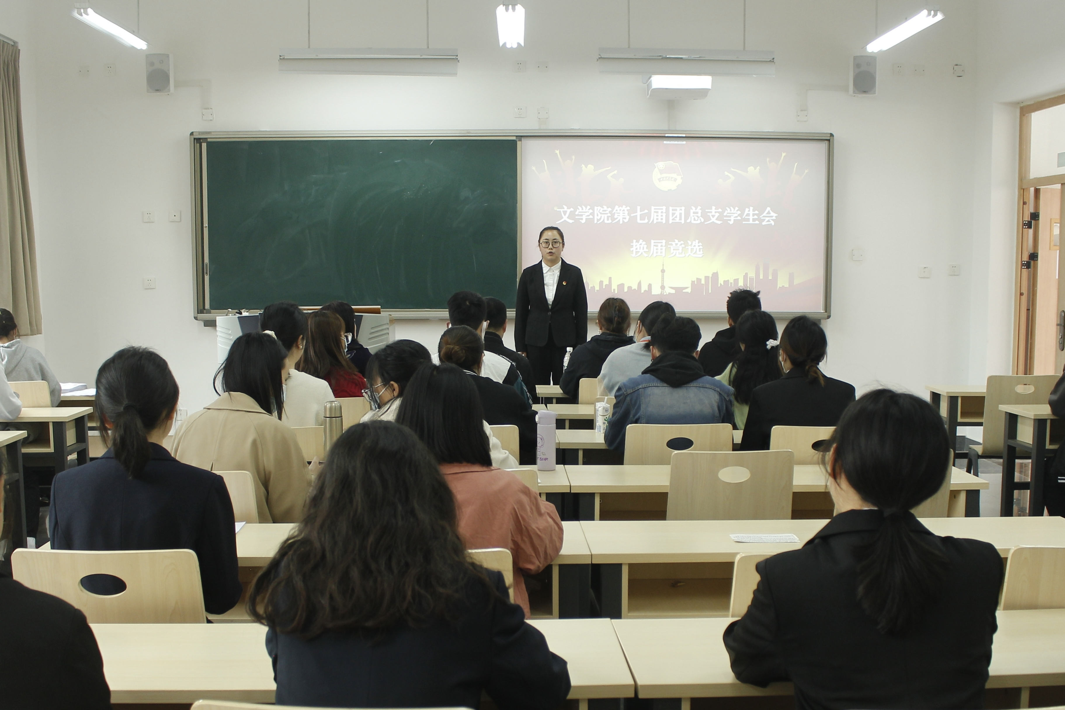 3月22日上午9点,公司第七届团总支员工会换届选举大会于明德楼B区204、205教室顺利举行。公司党总支副书记刘正丽,学工办辅导员金夏、汤靓、甘成望,第六届团总支副书记(员工)龙鑫雨,员工会执行主席赵林梅,主席团成员成聪、孙壹多,各部门负责人共同担任评委。彭雪怡、蒋婷婷等51名志愿者参与本次换届竞选。主持队余红君、聂彤担任此次大会的主持人。