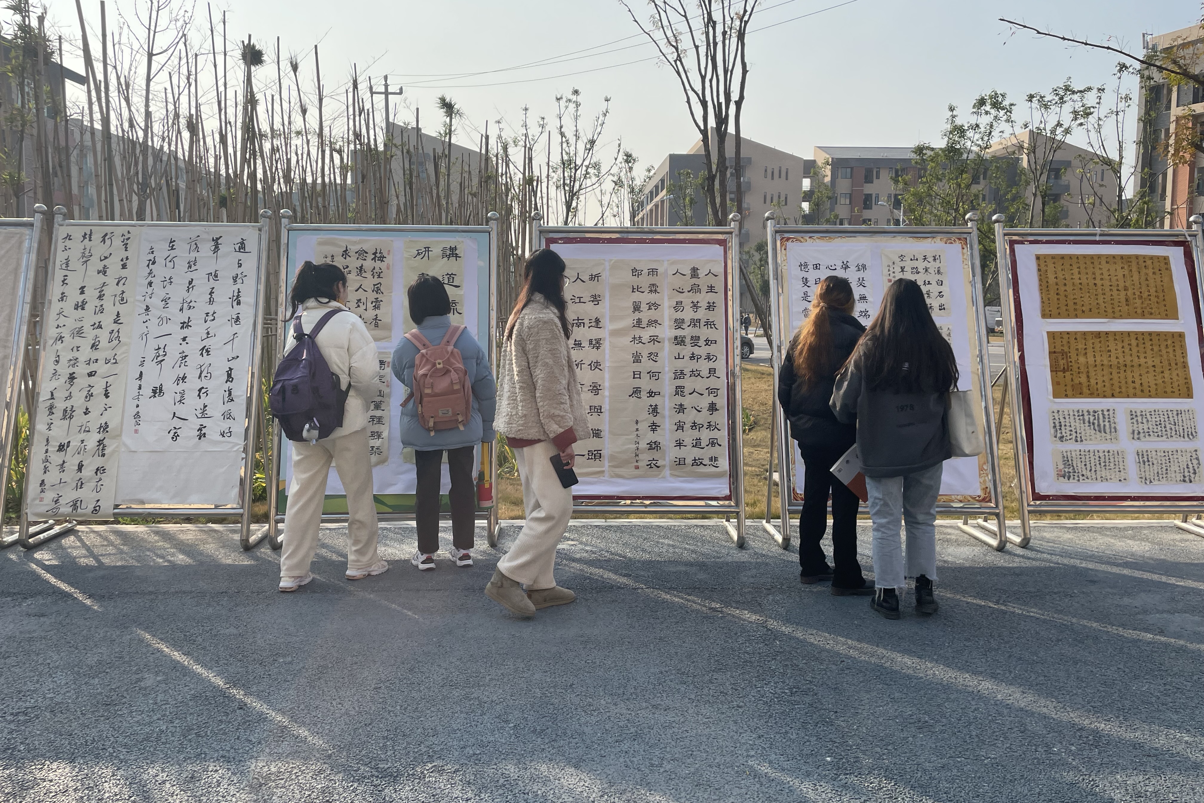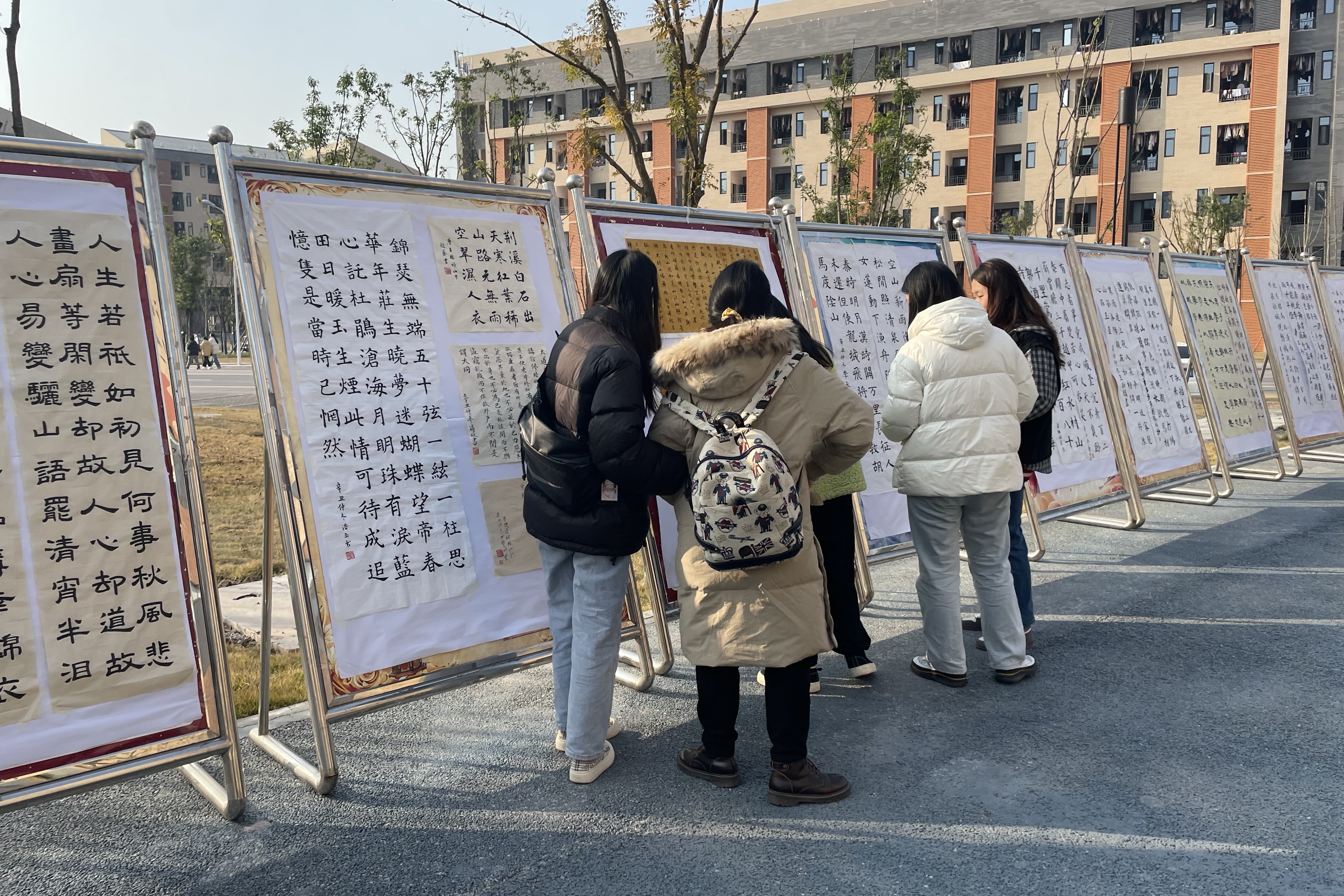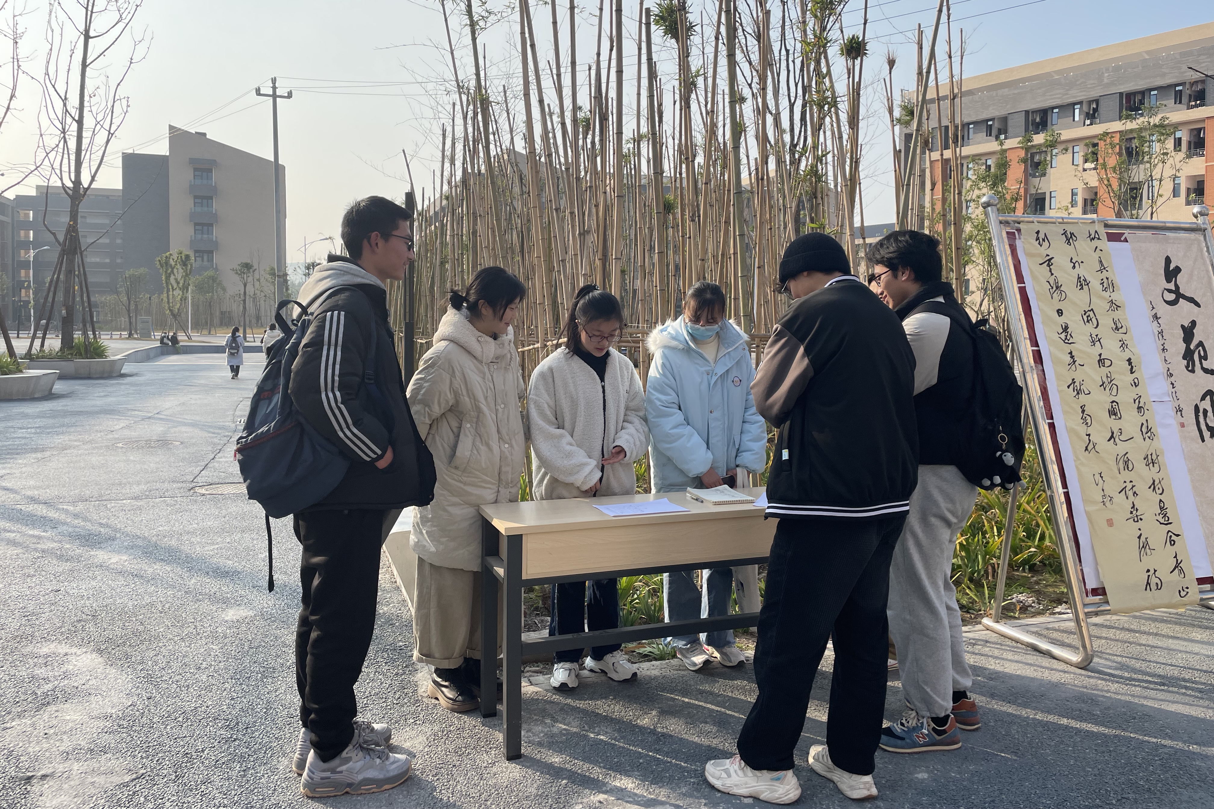 伴随着冬日温暖的阳光,前来观看的师生在书法作品前驻足欣赏、细心品味。此次展览的书法作品各具特色,有笔划平正、严整飘扬的楷书;也有飘逸超迈、沉着痛快的行书;不拘章法,笔势流畅的草书,各种神采飞扬、风骨雄健的书法作品展现了公司学子的艺术才华,让同学们在执笔、运笔、点画、结构、布局中感受书法的魅力。展览期间,为了激发同学们的创作热情、给同学们提供展现自我的机会,书法队采取积分制精心设置了“集字成诗”、“诗词接龙”等现场活动。前来报名参加的同学络绎不绝,写下了“人生得意须尽欢,莫使金樽空对月”、“树树皆秋色,山山唯落晖”等名诗名句,充分彰显了公司学子深厚的知识积累和文学功底。同时,书法队将在每日活动结束后,遵循公平、公正、公开的原则及时公布答题积分,最终按照积分的排名发放书法套装、小礼盒以及礼品纸袋等精致小奖品。