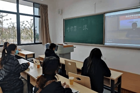 公司辅导员金夏带领2019级1班全体同学在明德楼B401教室收看 “开学第一课”专题节目。